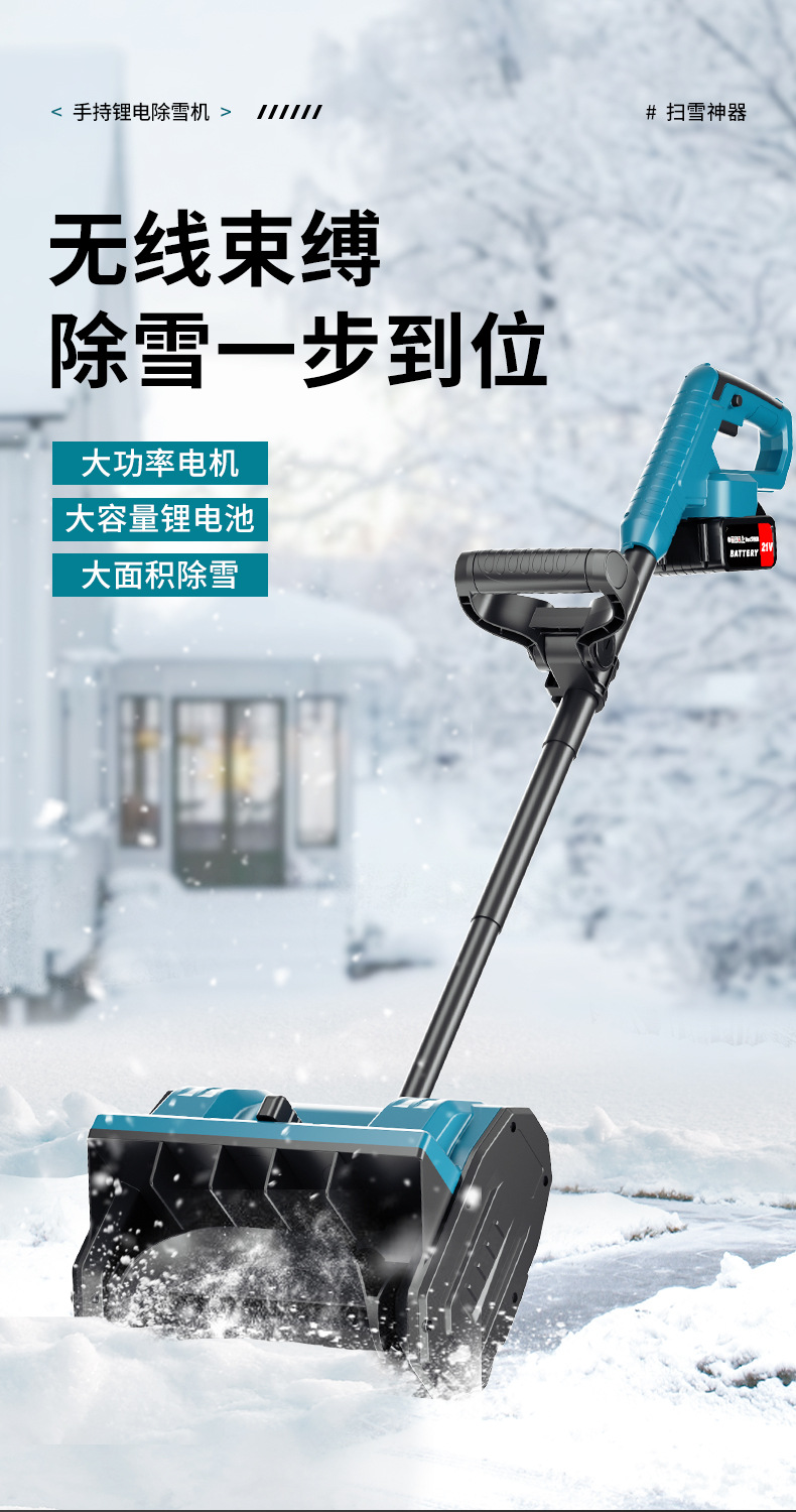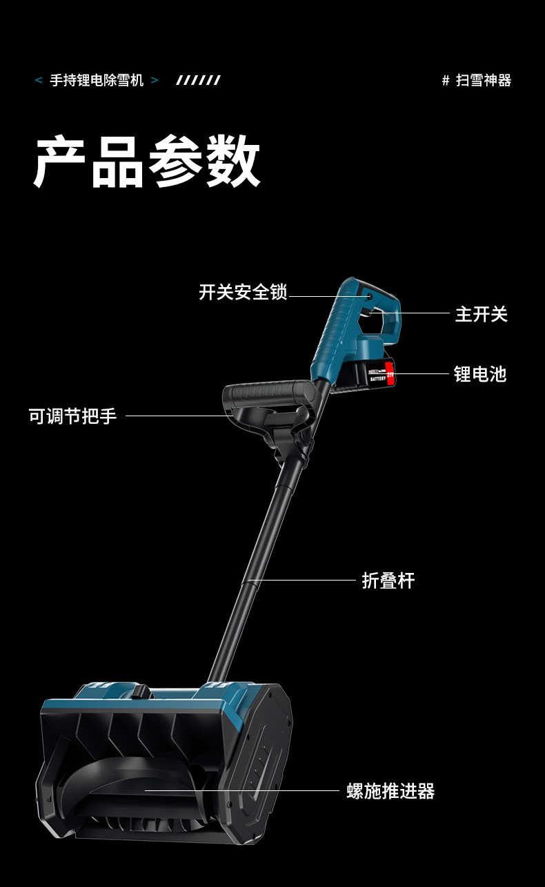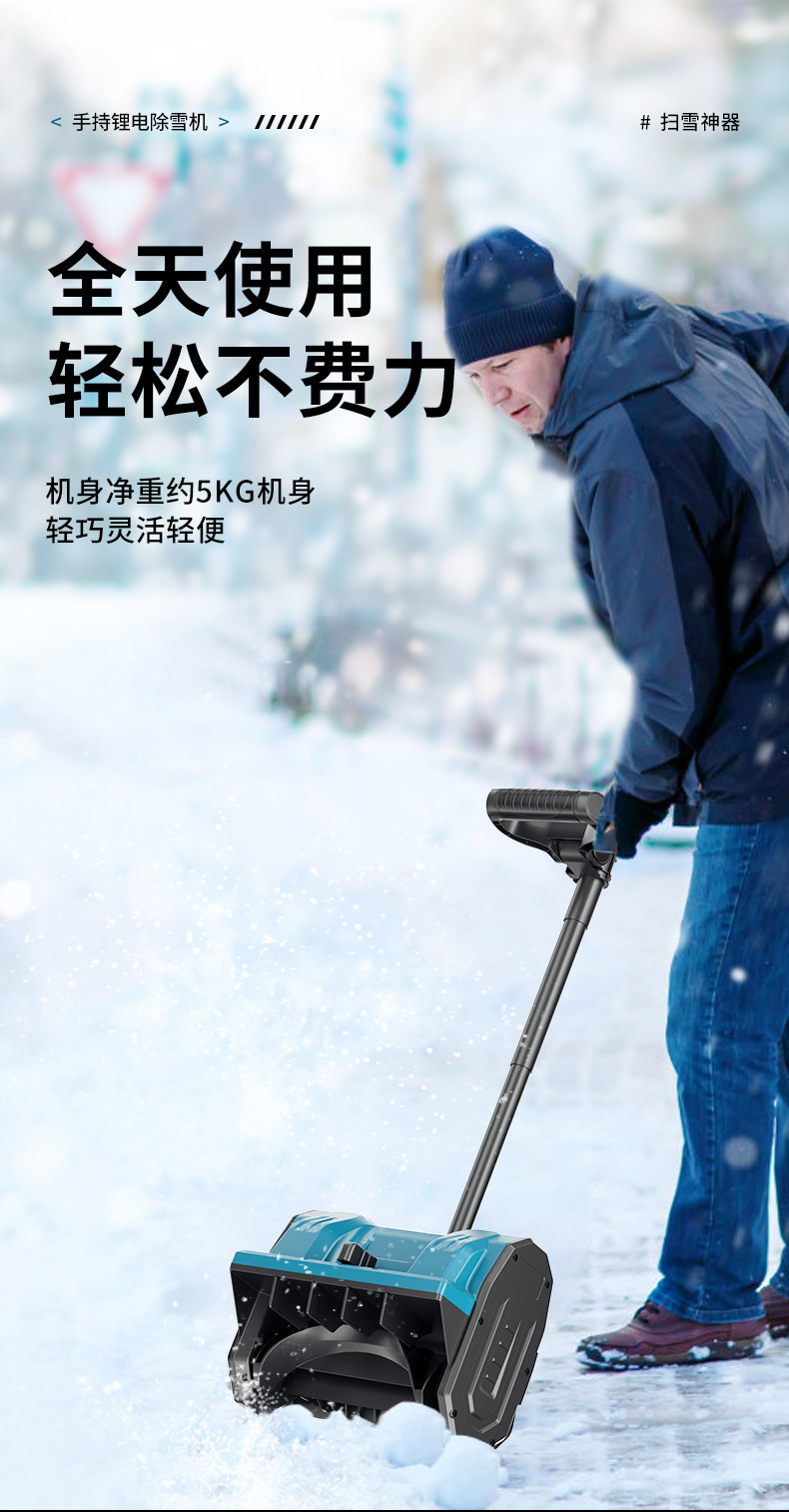跨境除雪机家用手推式锂电充电扫雪机多功能便携折叠抛雪机铲雪机