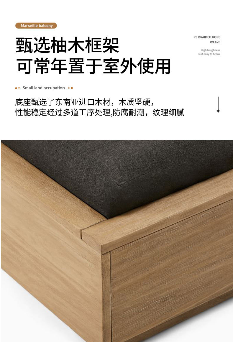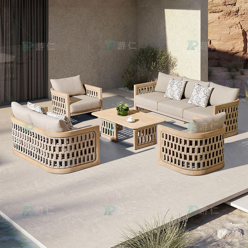 屋外ソファ中庭チーク籐コーヒーテーブル北欧組み合わせバルコニー屋外ヴィラガーデン籐椅子無垢材家具