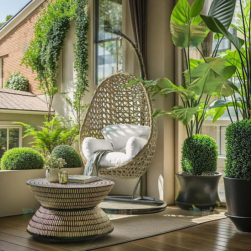 屋外籐鳥の巣ハンギングチェアホーム屋内テラスバルコニーレジャーインターネット有名人怠惰なスイングダブル籐椅子の組み合わせ