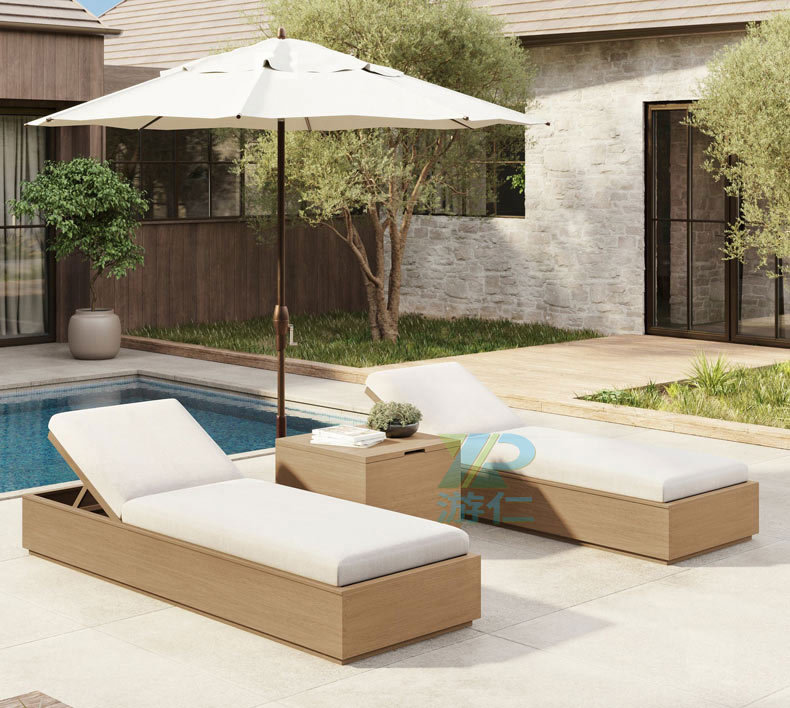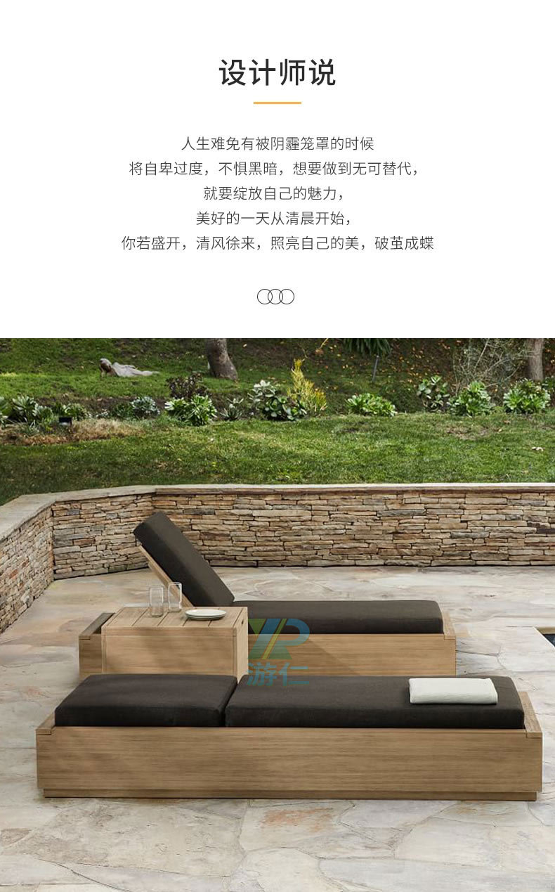 屋外ベッドガーデン別荘プールビーチチェア高級団地柚木実木レジャーリクライニングチェアの組み合わせ