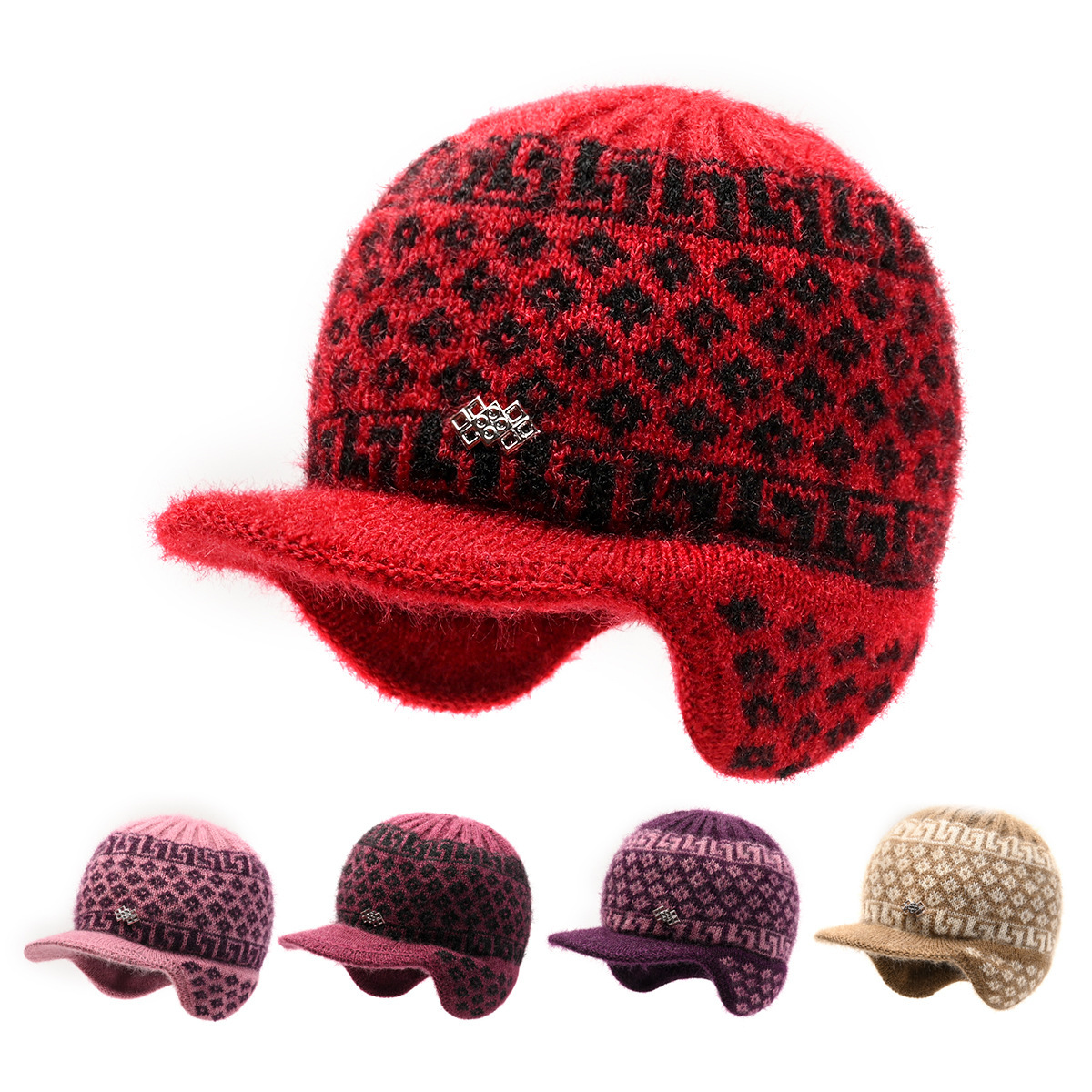中高年のお母さんの帽子の女性の秋冬の新型の保温のおばあさんの耳の保護とアヒルの舌のニットの毛糸の帽子