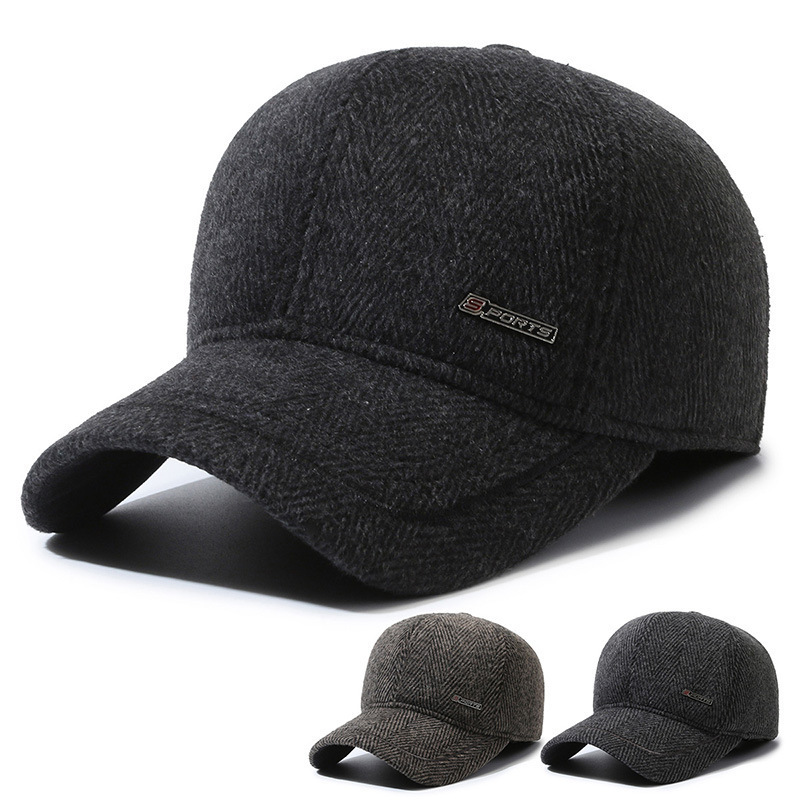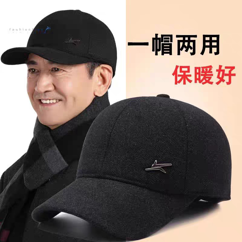 冬の新型男性の屋外防風とベルベット保温アヒルの舌帽ファッションシンプルな中高年のお父さんの耳保護野球帽