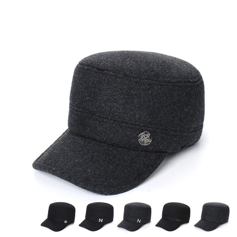 帽子の男性の秋冬の屋外の毛の帽子の韓国版のファッション的な中高年の平頂の耳の帽子とベルベットの保温のアヒルの舌の帽子