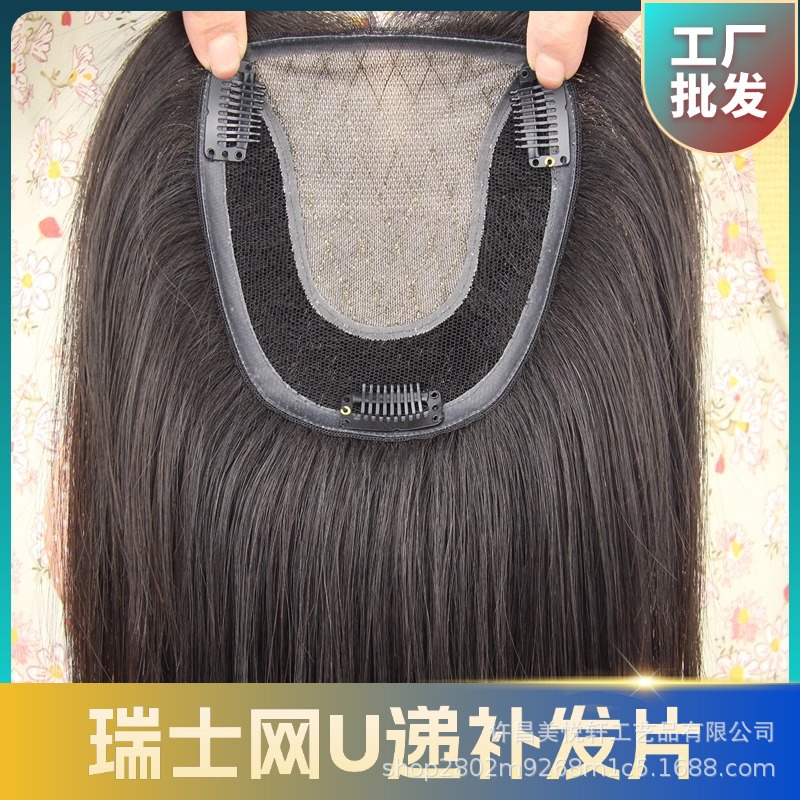実店舗スイスネット12*14U型ニードル分け目編み込みヘアウィッグ女性用白髪隠し増毛人毛若返り