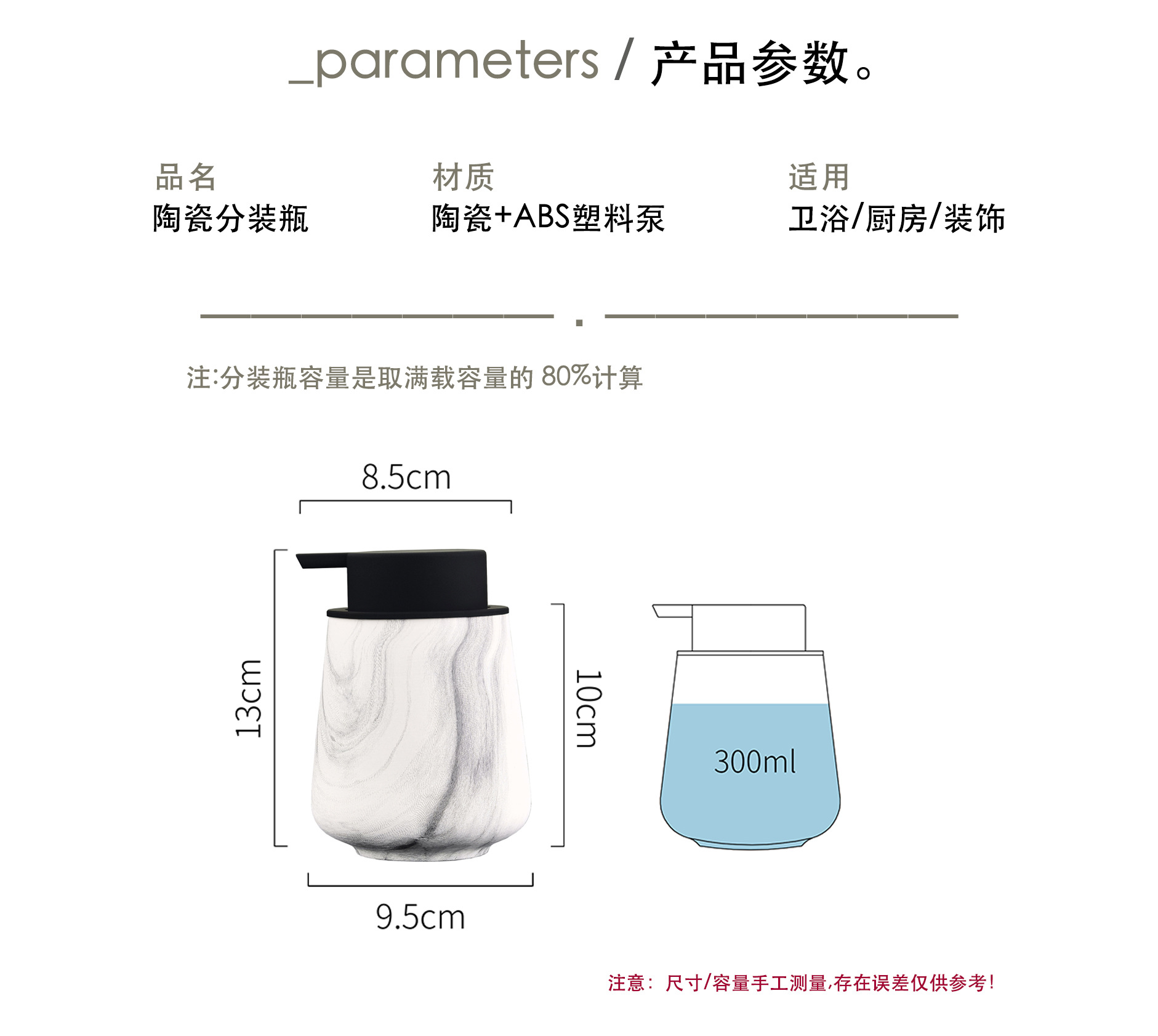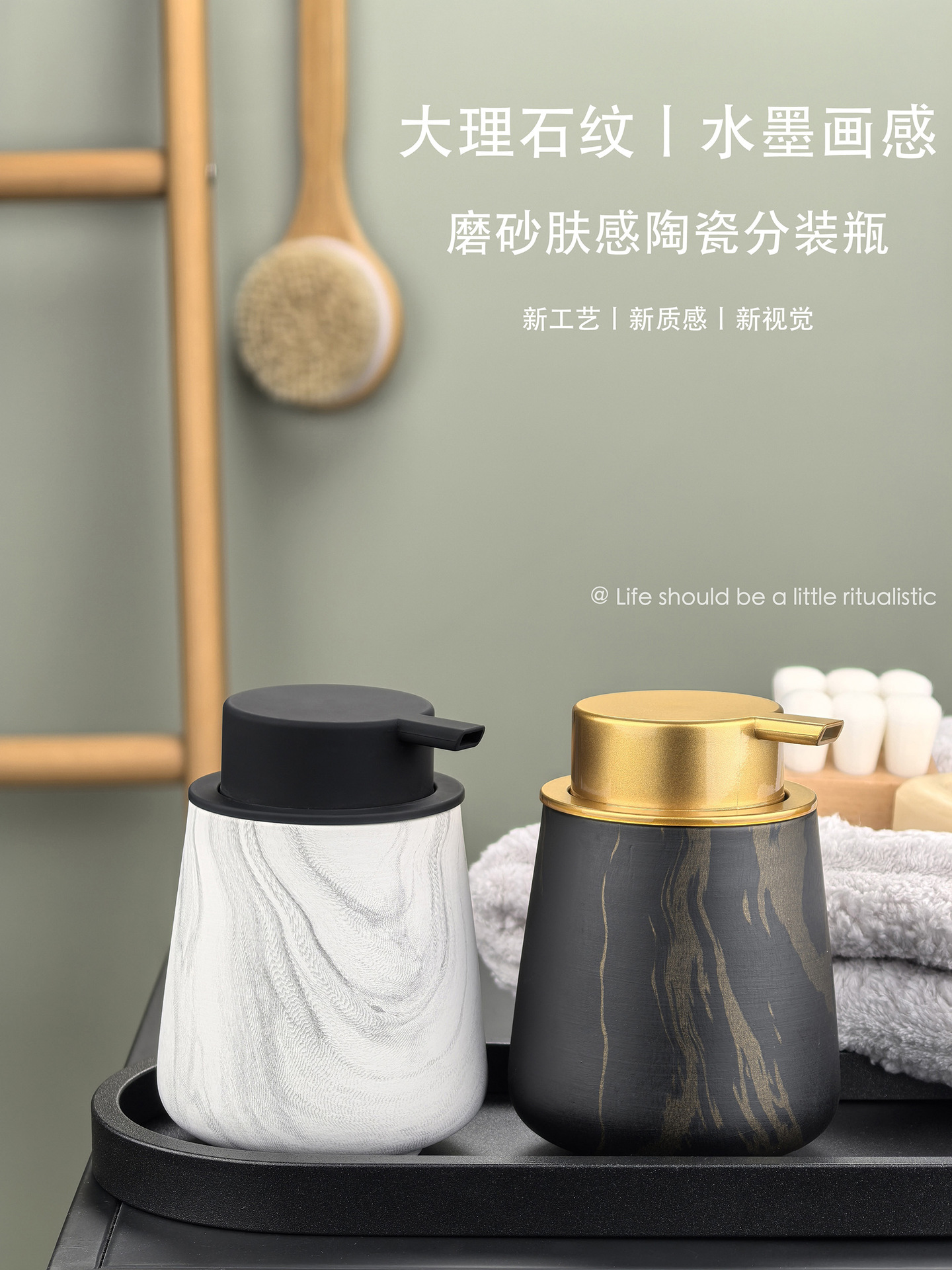手洗い液瓶陶磁器空瓶大理石紋水墨風洗浄保護液体プレス交換分注瓶新製品
