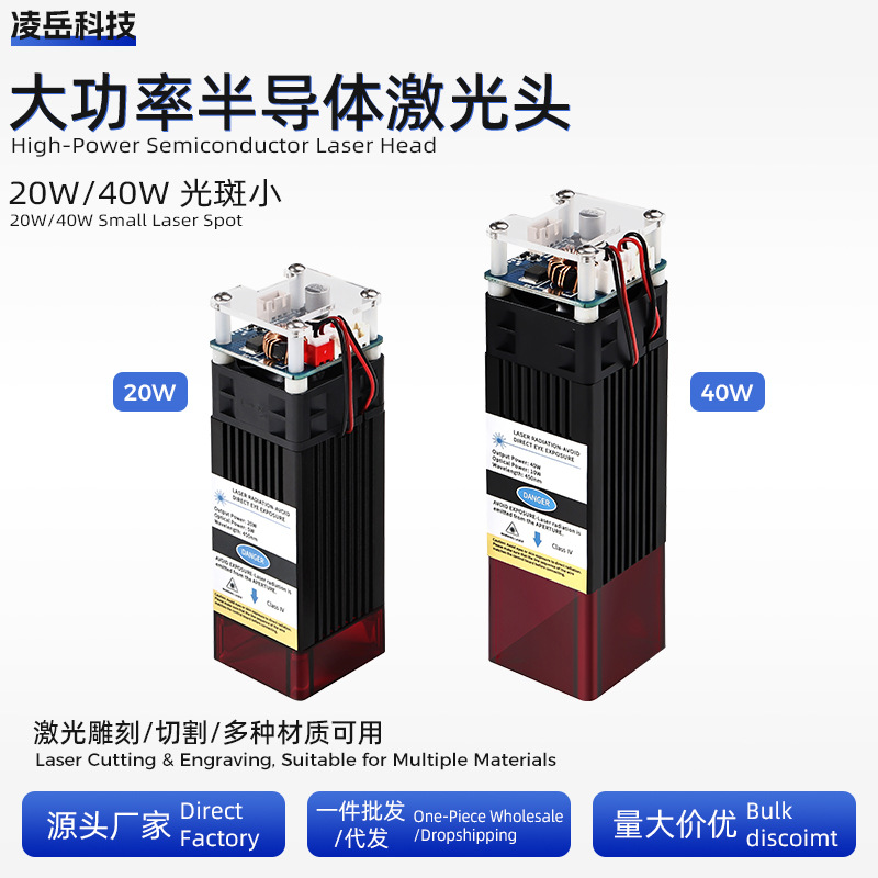 20W 40W大功率定焦激光模组450nm CNC激光切割DIY激光头压缩光斑