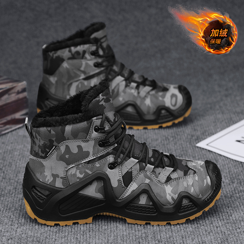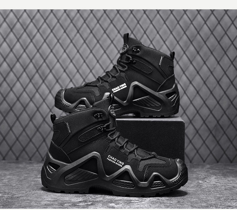 高組男靴秋の新型アウトドア徒歩耐摩耗性労働保護靴の厚い底が高くなりました。マーティン迷彩作戦工装靴です。