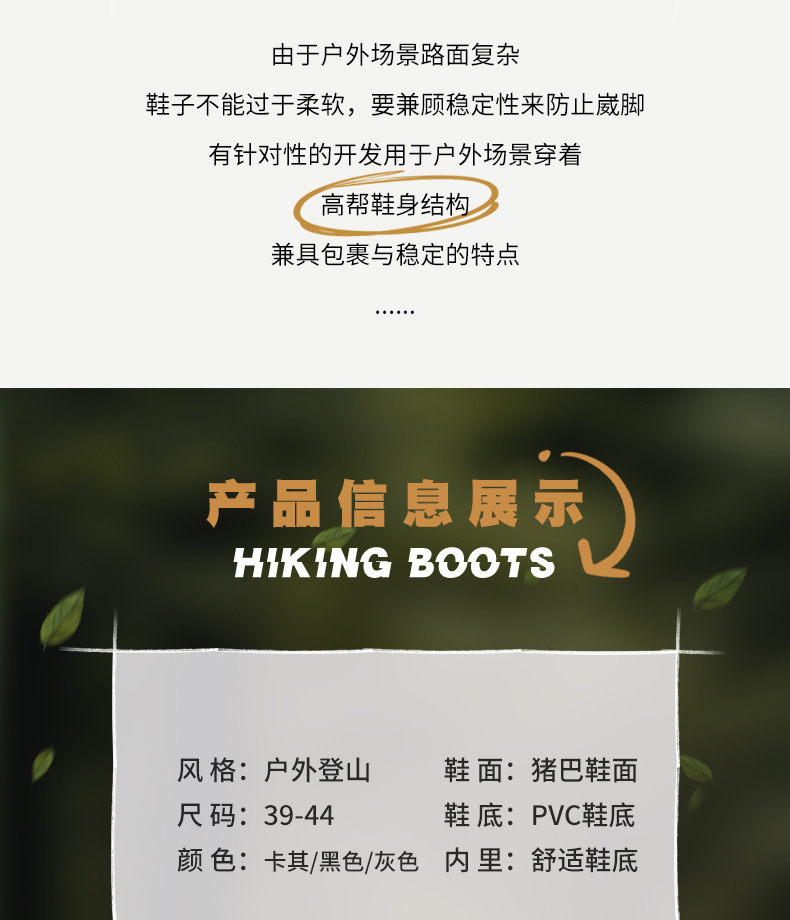 秋冬季男士户外防滑工装登山靴高帮大码皮面马丁靴休闲作战男靴子