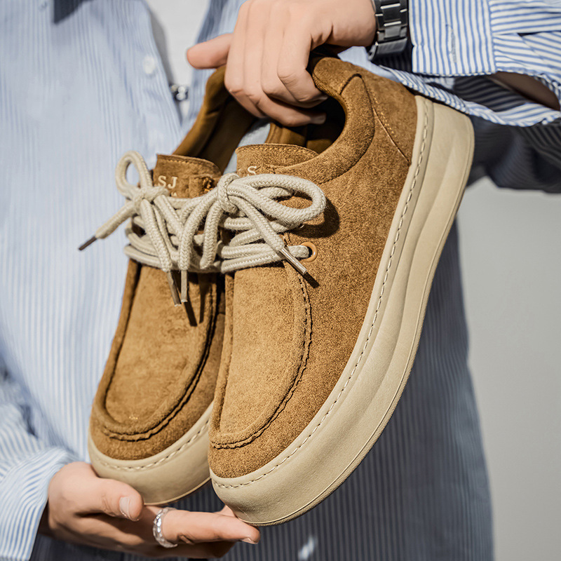 男鞋2025新款秋季休闲复古棕色休闲板鞋男士翻毛皮鞋厚底运动潮鞋