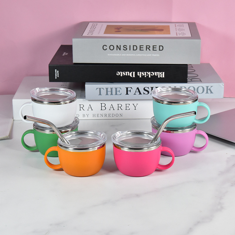 国境を越えた新しい 304 ステンレス鋼ウォーターカップ 3 オンス外側プラスチック内側スチールハンドルカップ落下防止と火傷防止コーヒーカップミニ