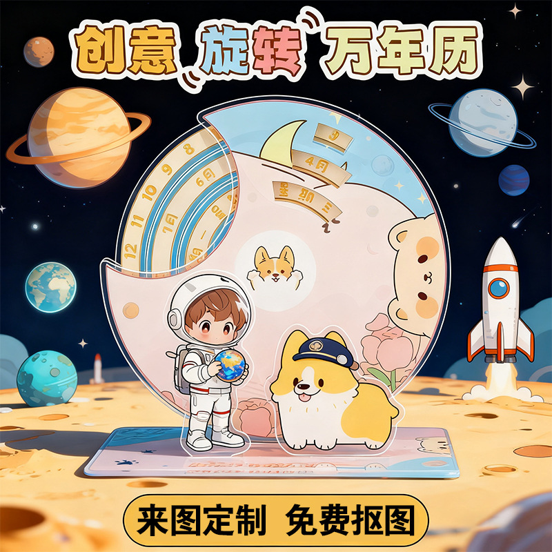 亚克力旋转日历定制创意桌面小摆件卡通动漫小台历转盘万年历摆台