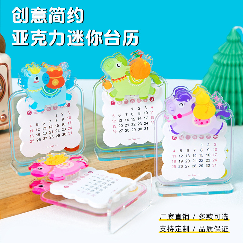 2026年アクリルカレンダー、小物、卓上、クリエイティブ、馬年、回転式永久カレンダー、ミニ漫画卓上カレンダー