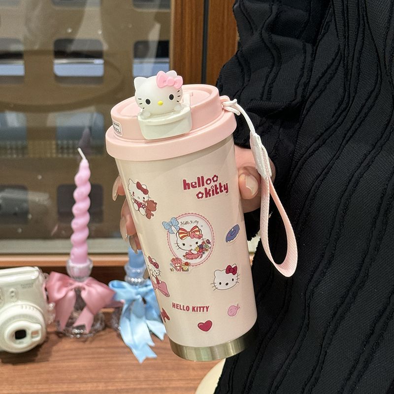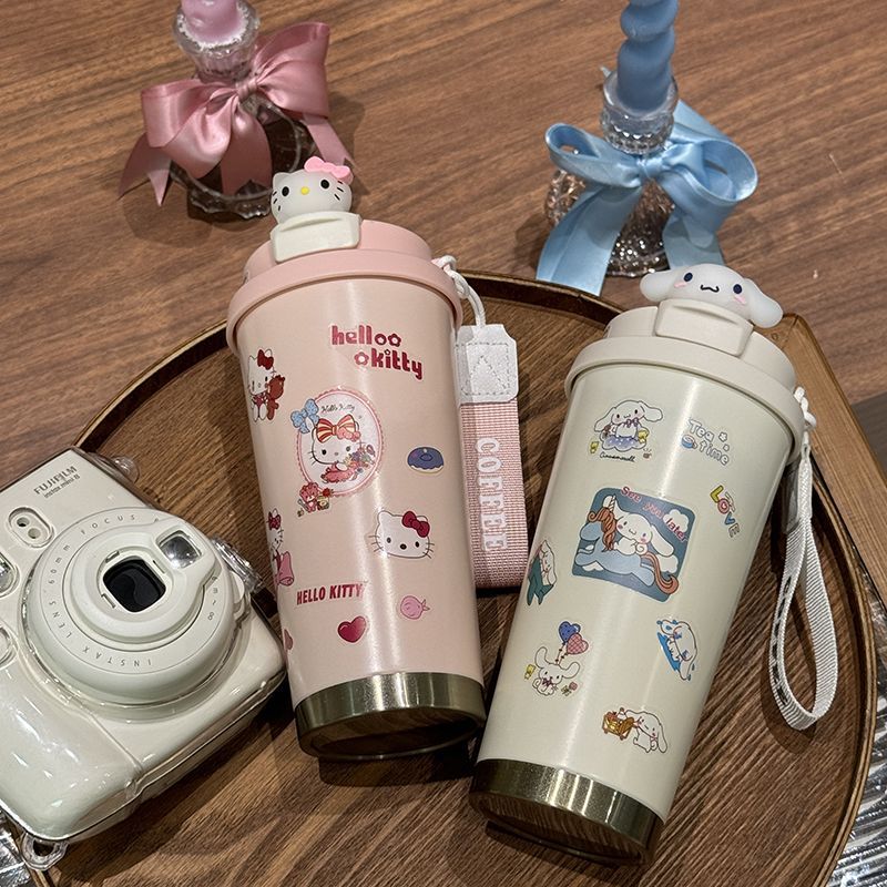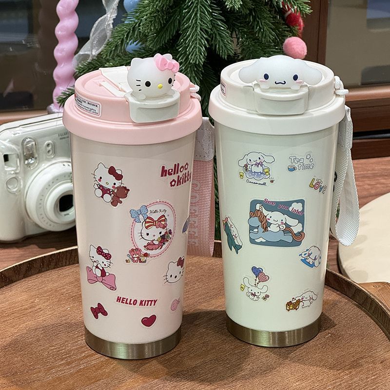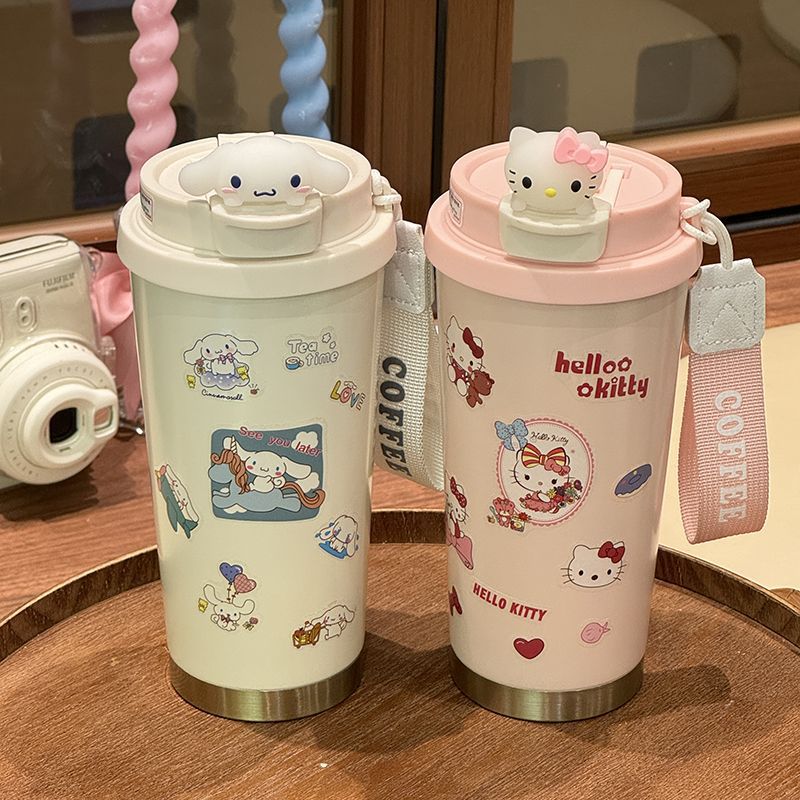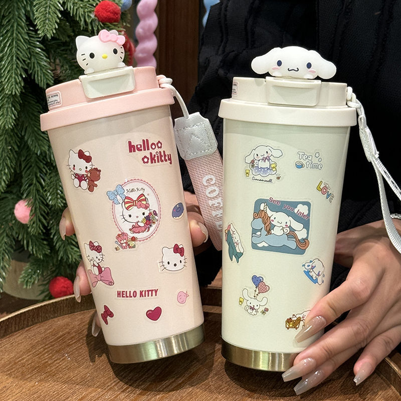 316保温カップ韓系高颜値アニメktコーヒーカップとロープ付きダブル飲料カップ保温カップストロー