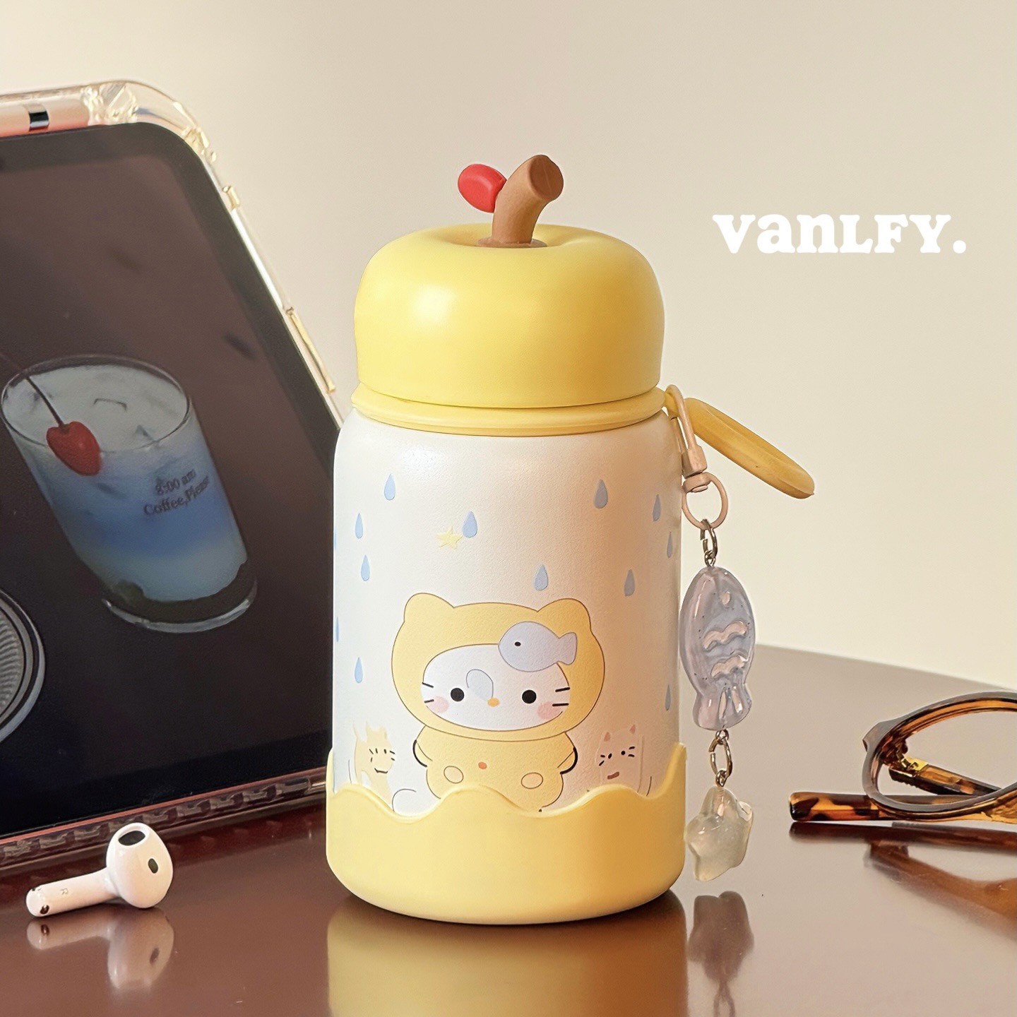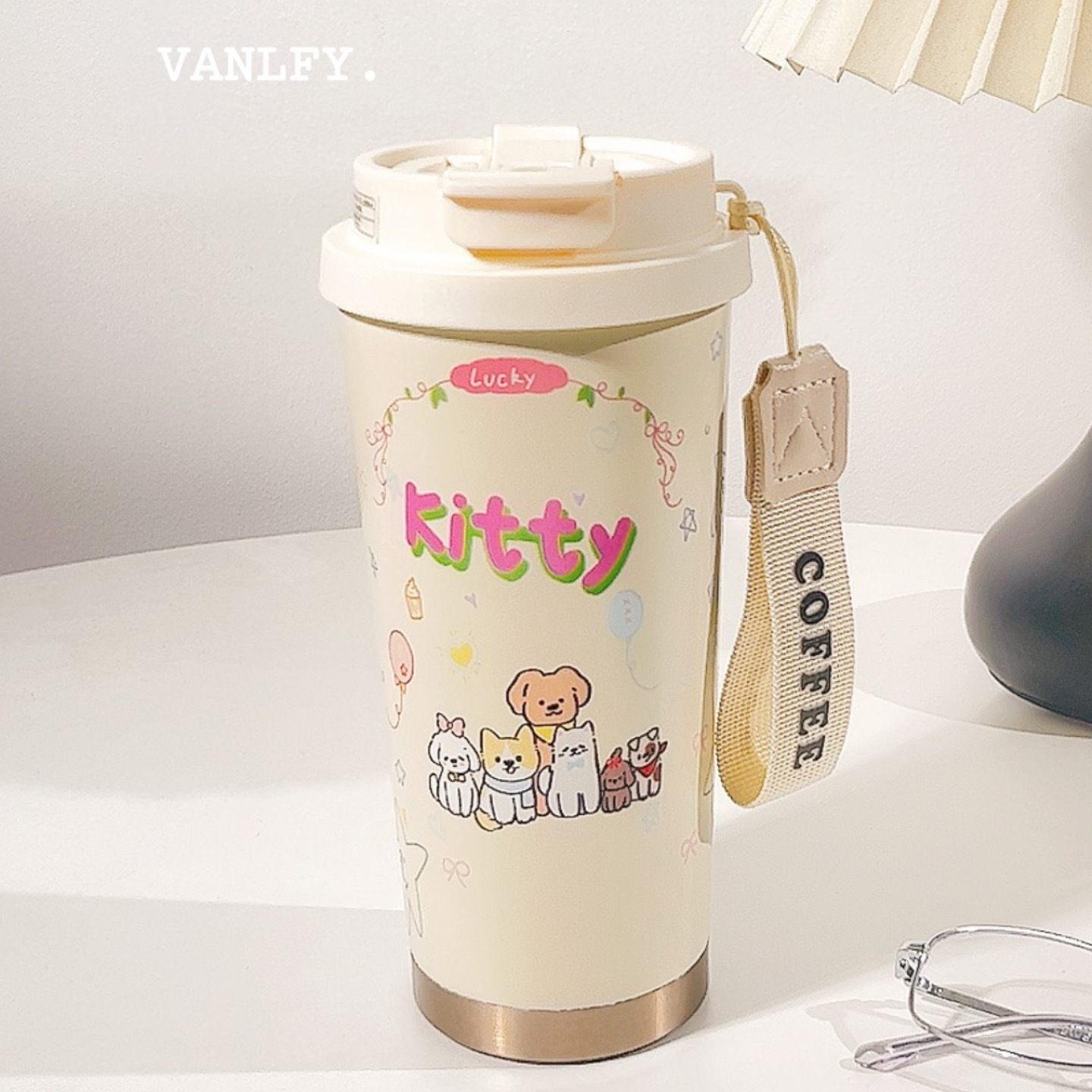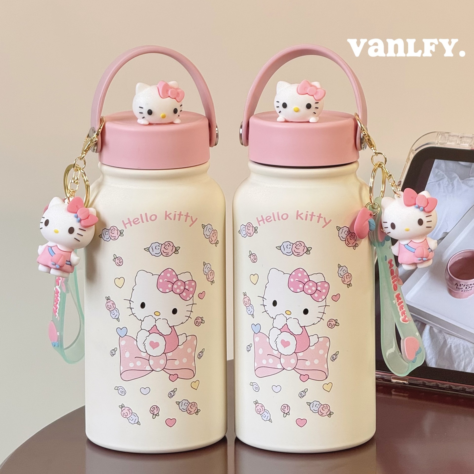 316保温カップ韓系高颜値アニメktコーヒーカップとロープ付きダブル飲料カップ保温カップストロー