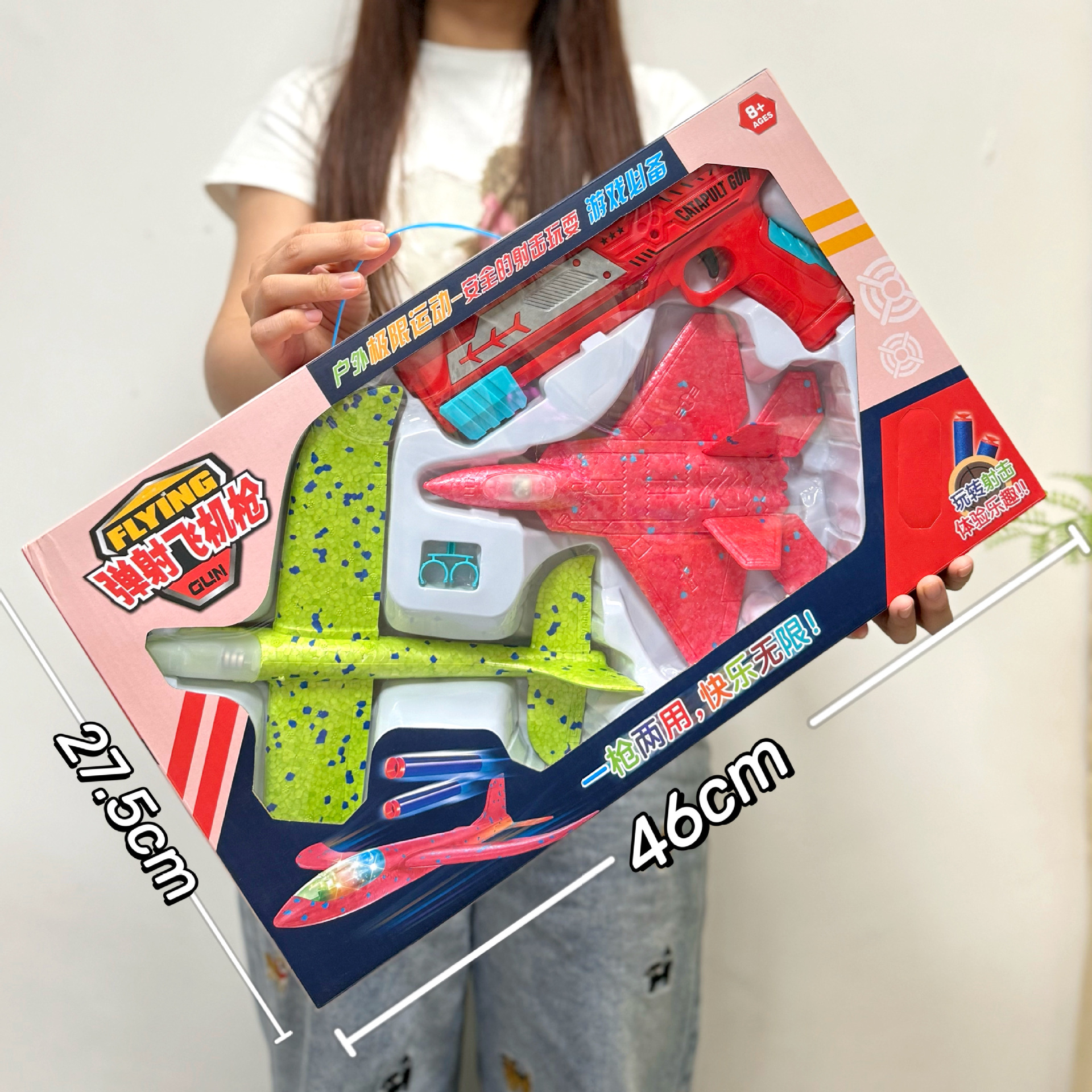 网红爆款弹射泡沫飞机手持发射枪手抛儿童飞天户外运动玩具小男孩