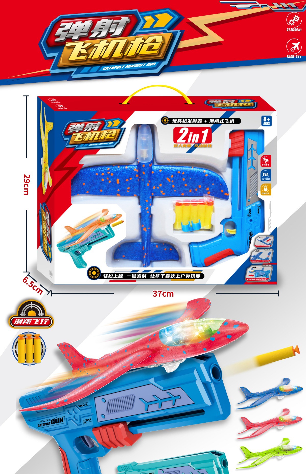 子供の射出飛行機フォームライト付き手投げグライダーガンおもちゃ屋外子供男の子のおもちゃギフトボックス