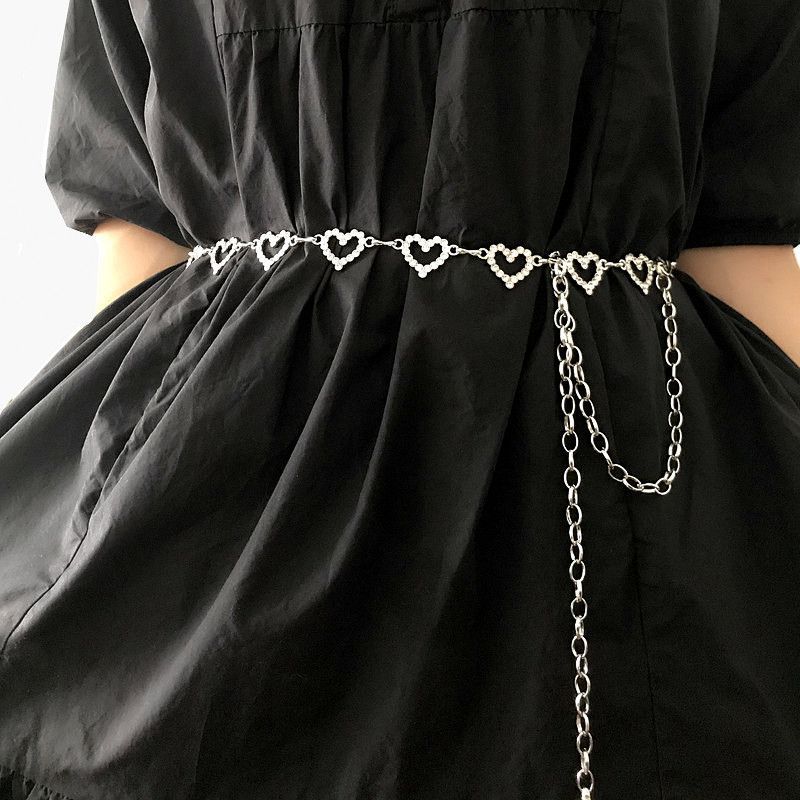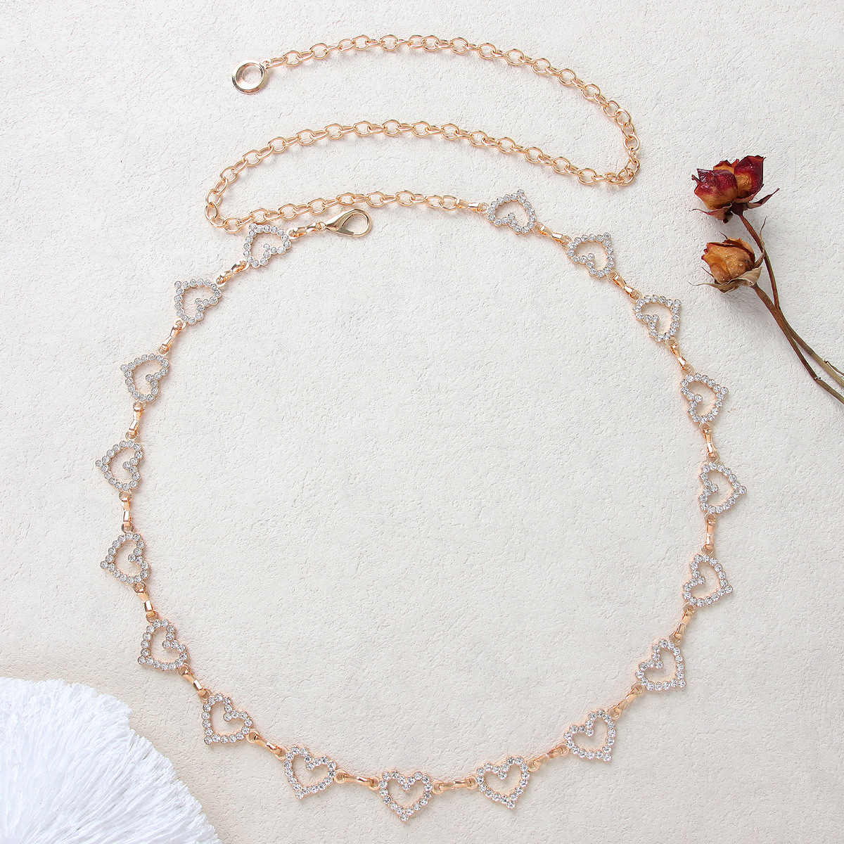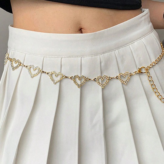 ハート型のラブウエストチェーン、女性用夏のエレガントなスカート付き、メタルチェーン中空ドレス、ラインストーン付き装飾ベルト
