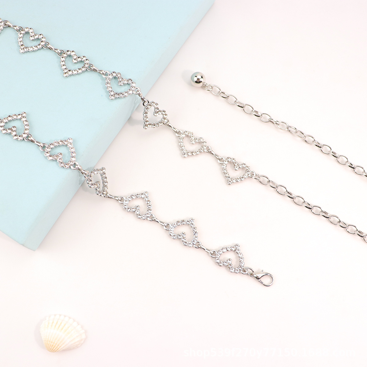 ヨーロッパとアメリカのクロスボーダーラブラインストーンウエストチェーン女性の夏の多用途ドレスジーンズメタルベルトチェーン卸売