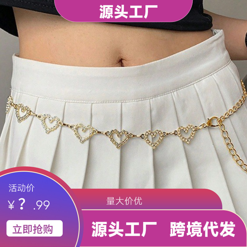 欧美跨境新款镶钻爱心拼接腰链女夏季百搭个性气质连衣裙牛仔裤
