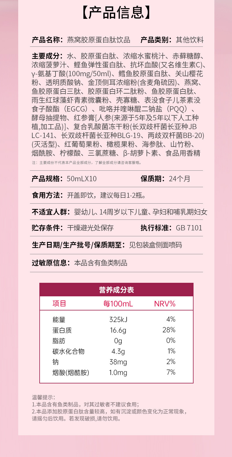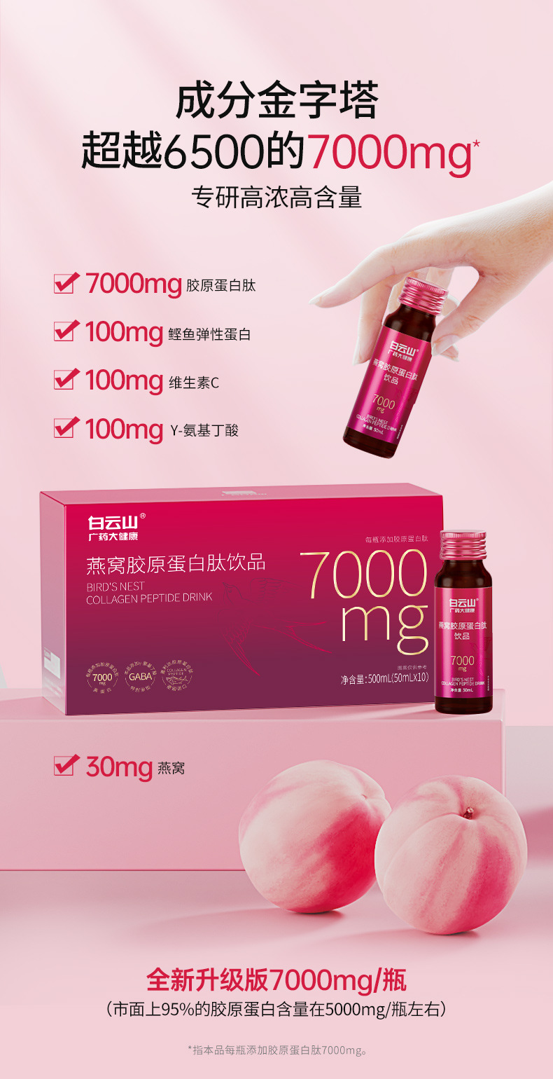 白雲山燕窩コラーゲンペプチドドリンク7000mg ナイアシンアミド ヒアルロン酸ペプチド経口液