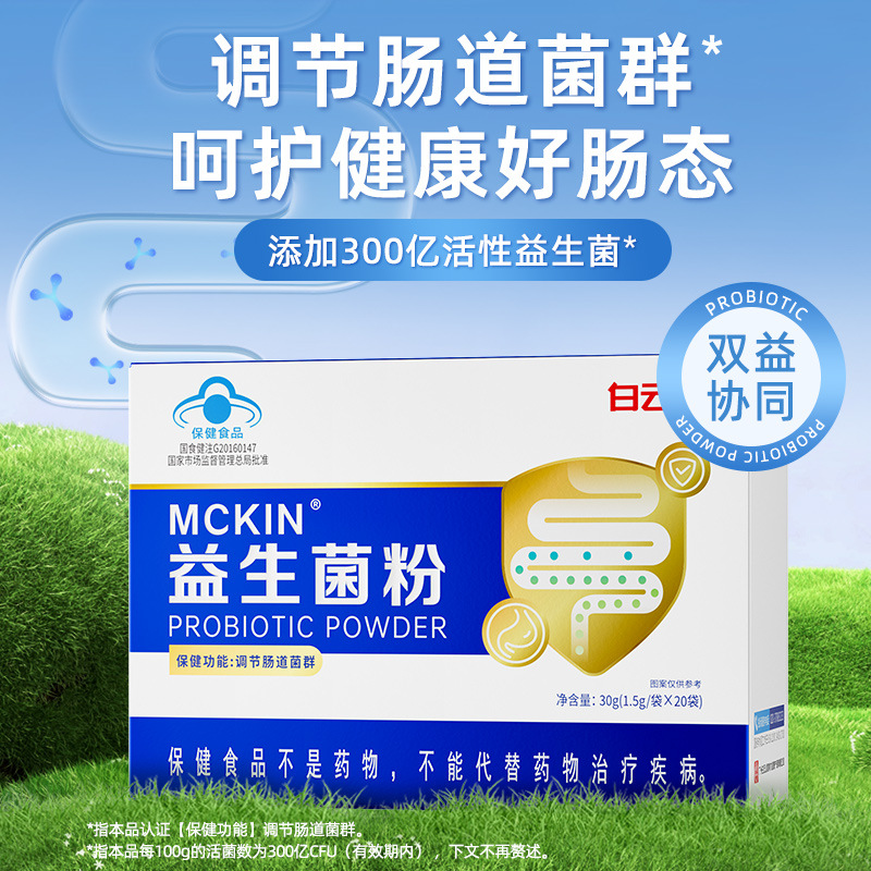 白雲山益生菌粉藍帽MCKIN益生菌粉調理腸内菌群双益協同3000億