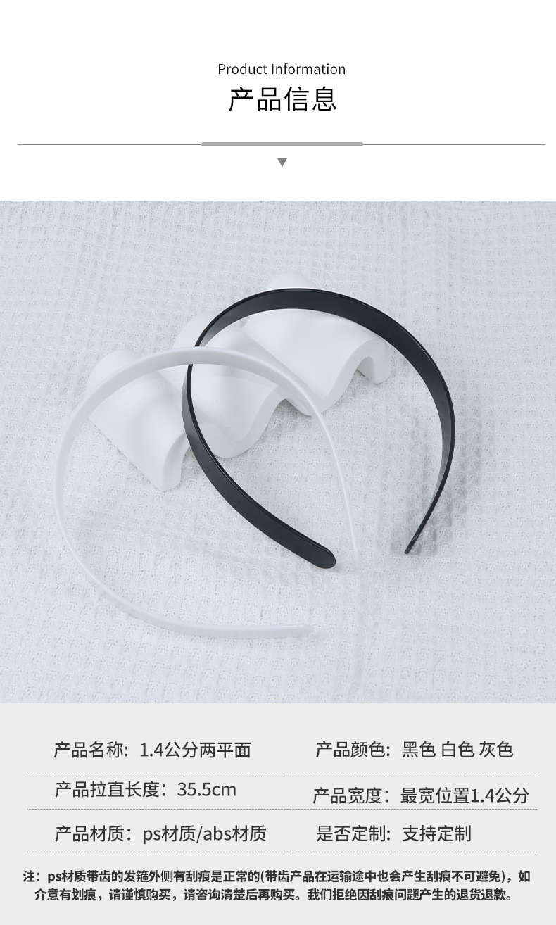 PS材質有歯毛胚カチューシャ靭性強光面底胚カチューシャ1.4外平内双列歯35.5