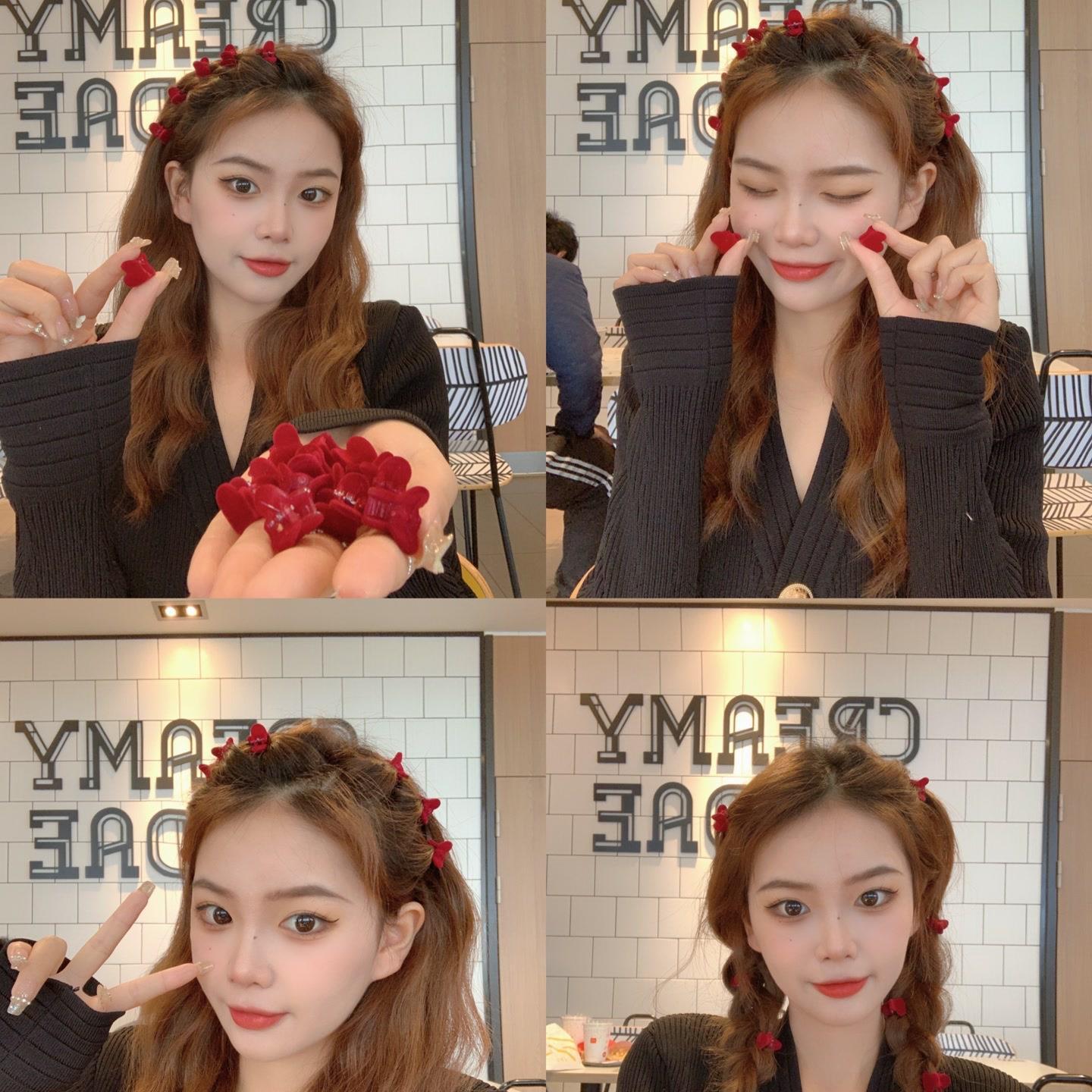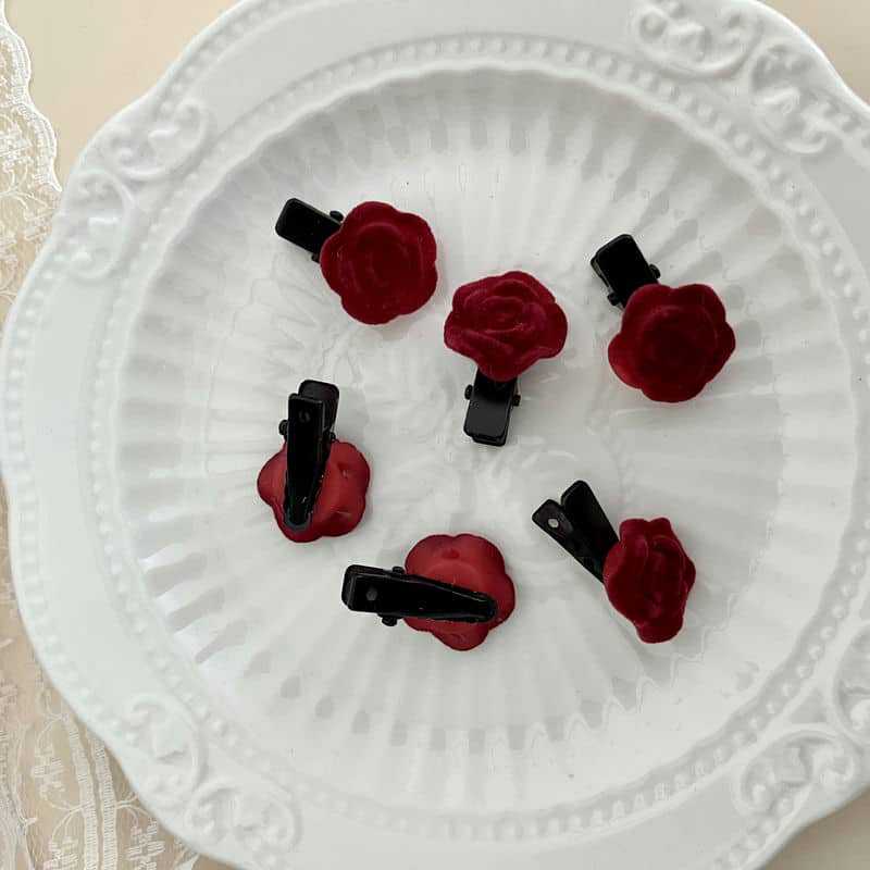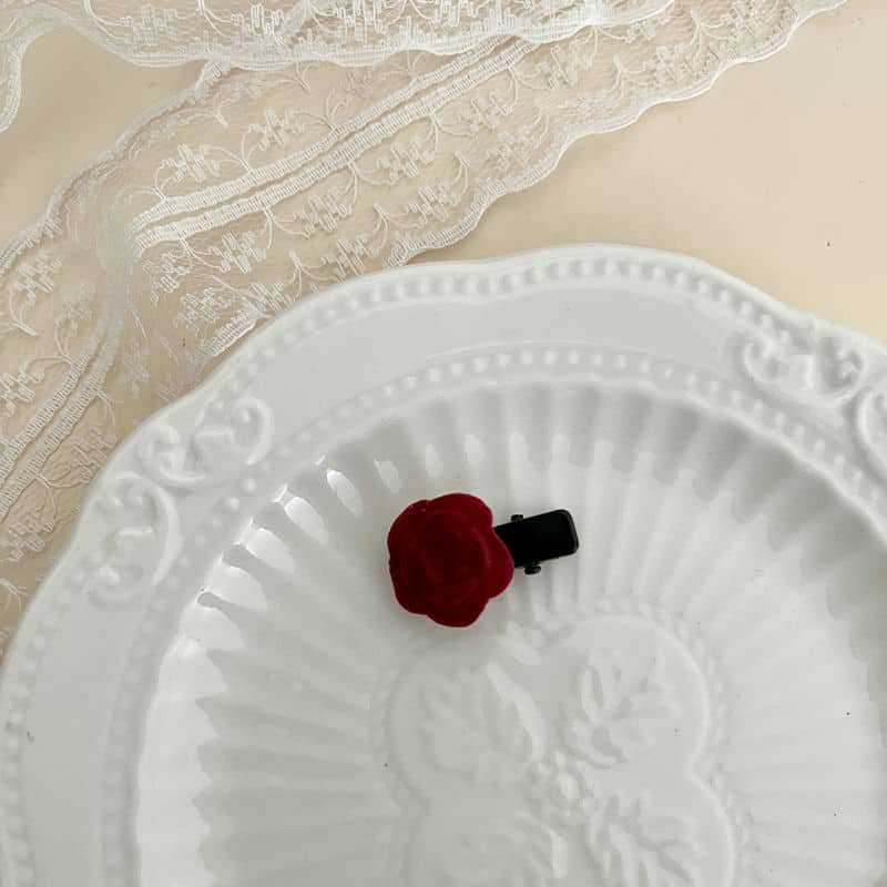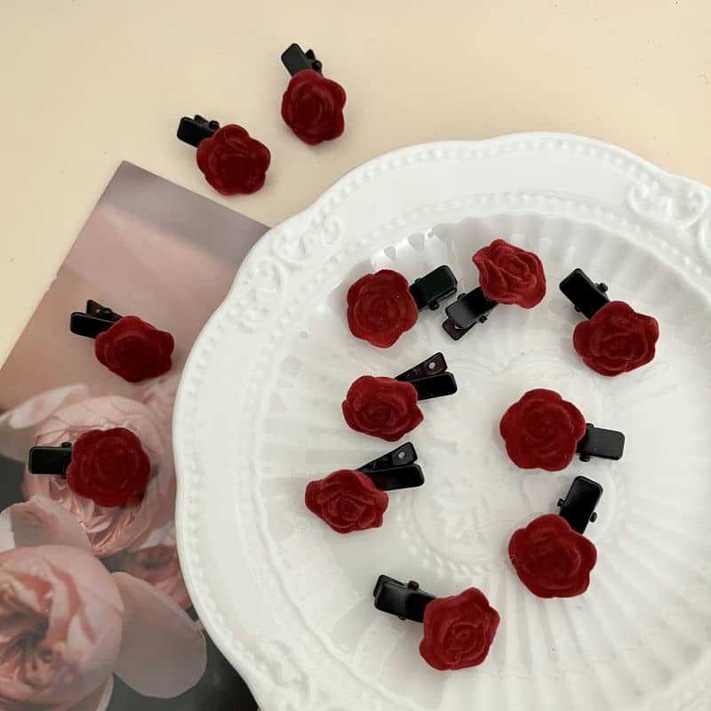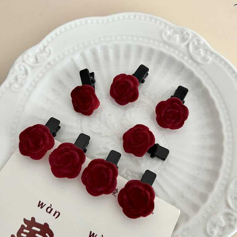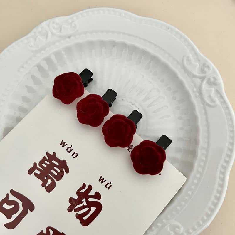 Shuyi Shaoxiancaoと同じスタイルのレッドベルベットローズヘアピン前髪サイドクリップ植毛小さなヘアピン