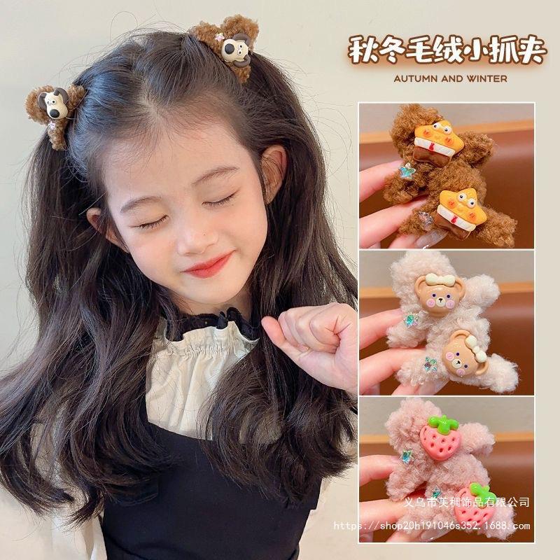 秋冬の植毛編みヘアクリップの女性側の前髪クリップの髪を整理して神器のネットの赤い額の1字の髪を整理します。