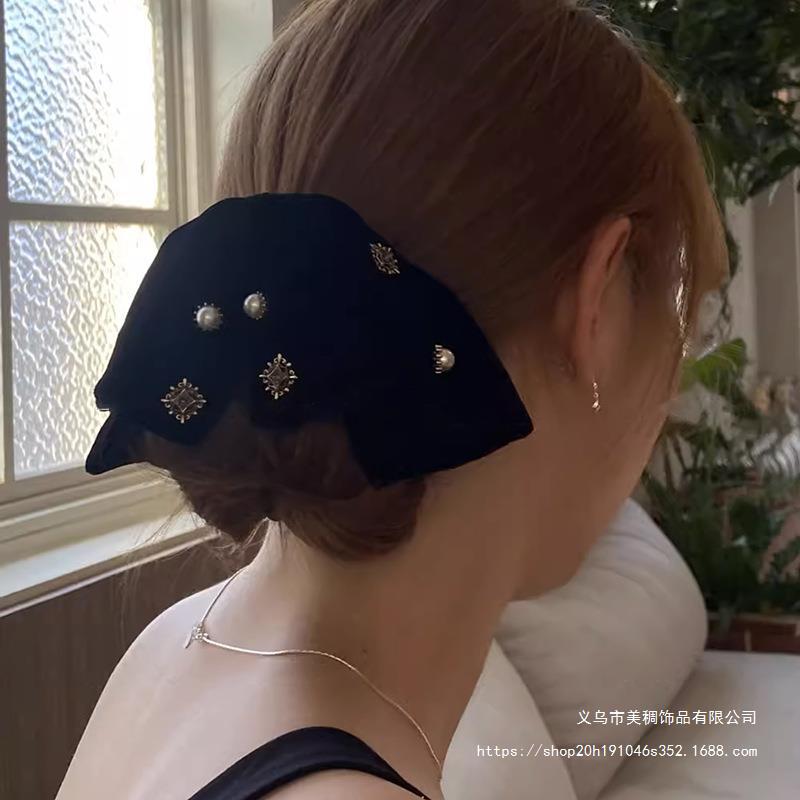 フランスのベルベットのレトロな蝶結びの髪は秋冬の高級感があります。
