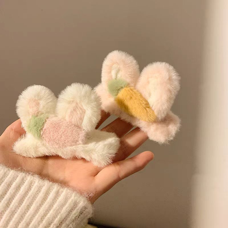かわいいウサギの耳のヘアピンの女性の側の端の砕髪の前髪は漫画のぬいぐるみの髪のニンジンのウサギのbbクリップを挟みます。
