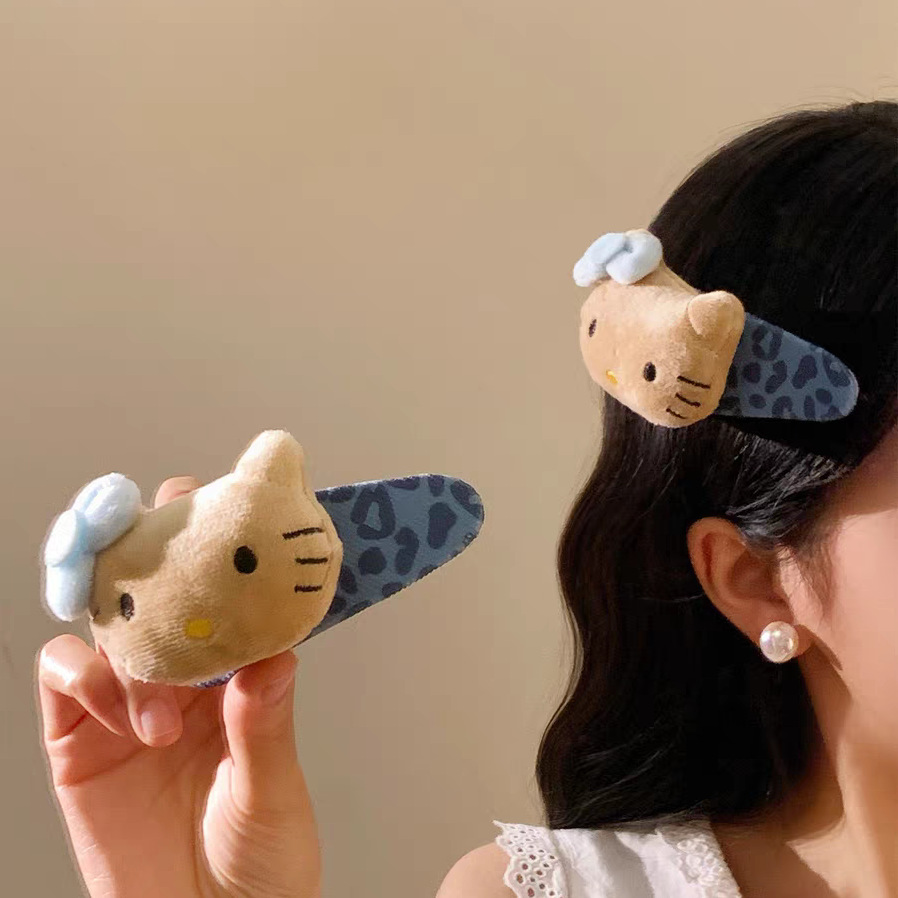 甜美少女心粉色kt毛绒发夹女生可爱卡通侧边碎发掰掰夹bb夹发饰品