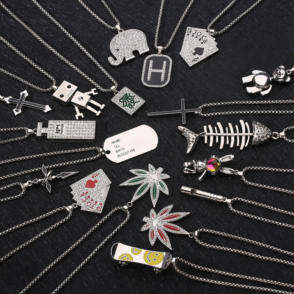 欧美钛钢项链批发街头嘻哈朋克男款女饰品吊坠合金挂件潮流毛衣链