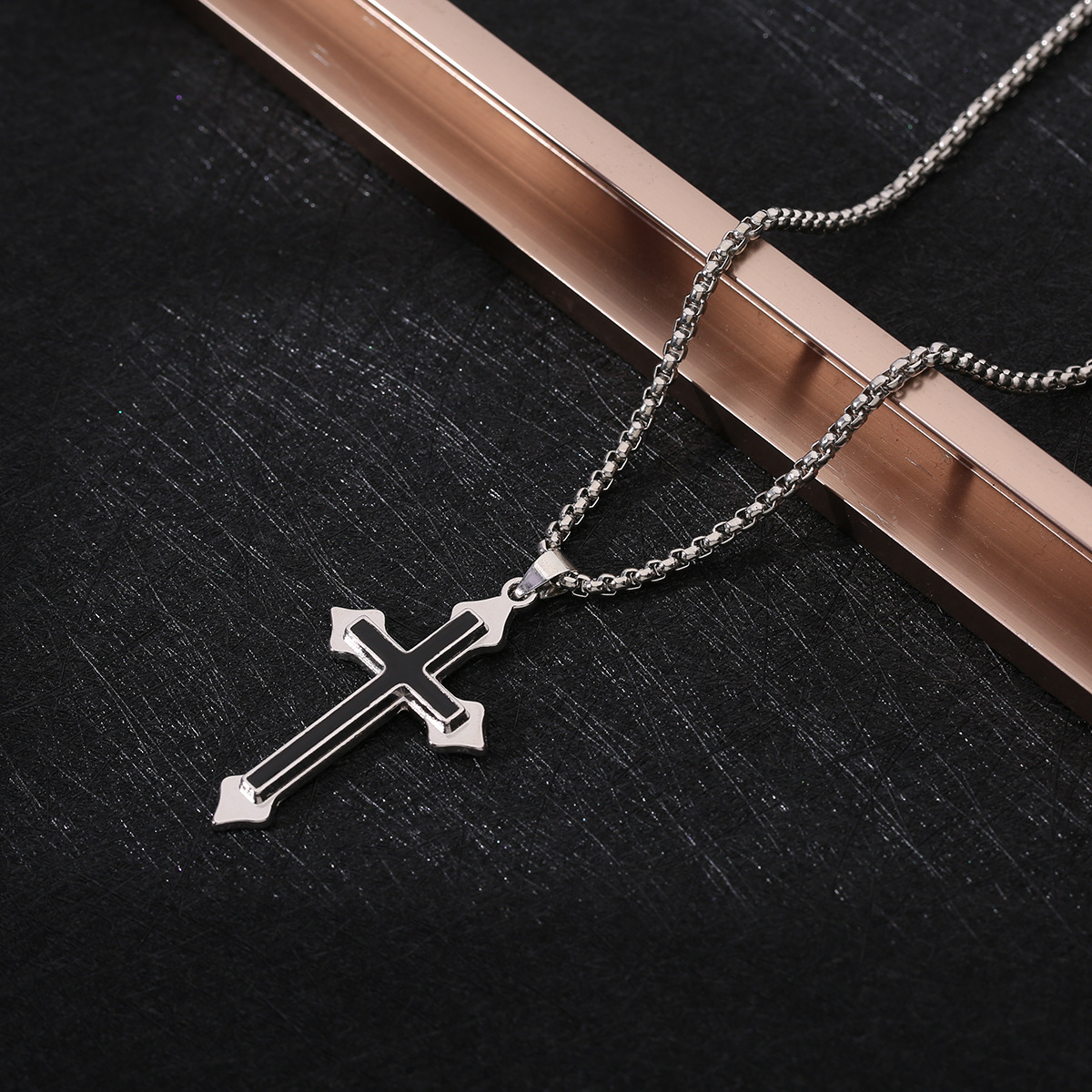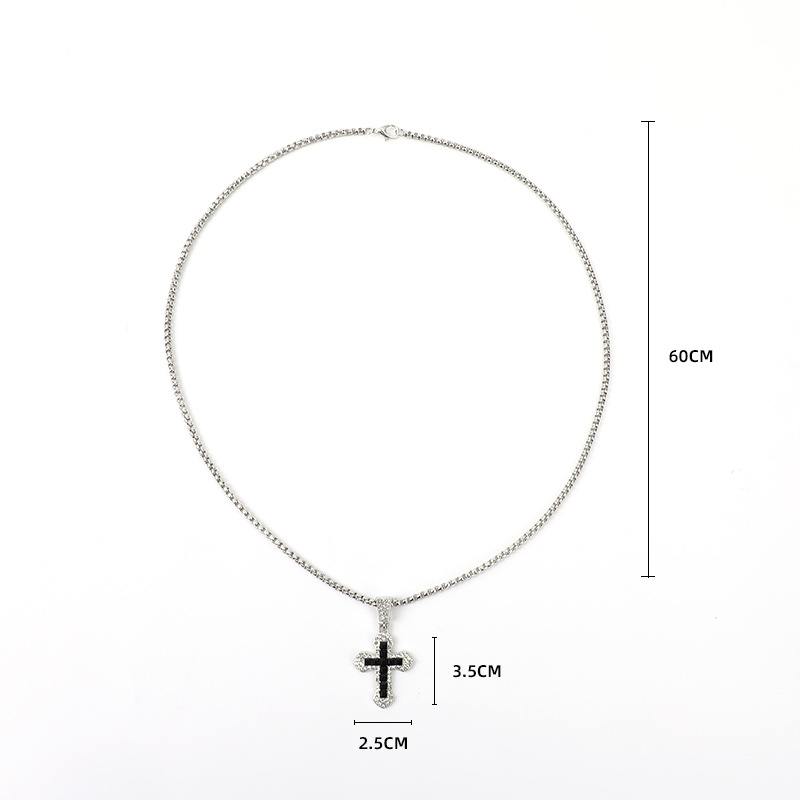 クロスボーダークロスネックレスヒップホップスタイルジルコンペンダントジュエリーチタン鋼多用途ネックレスパーソナライズされたフラッシュジュエリー卸売