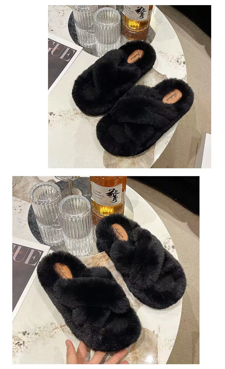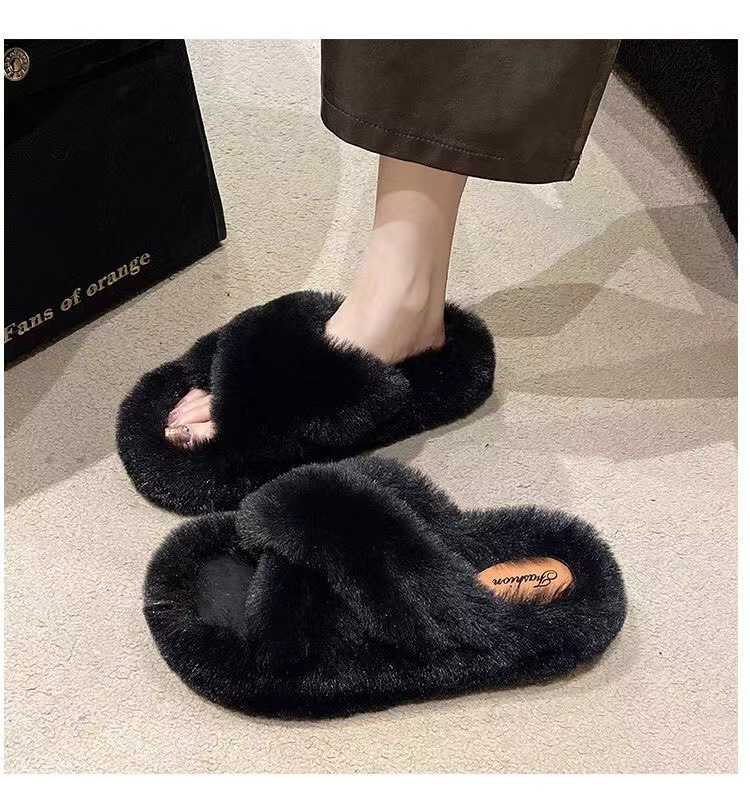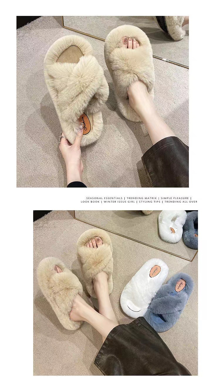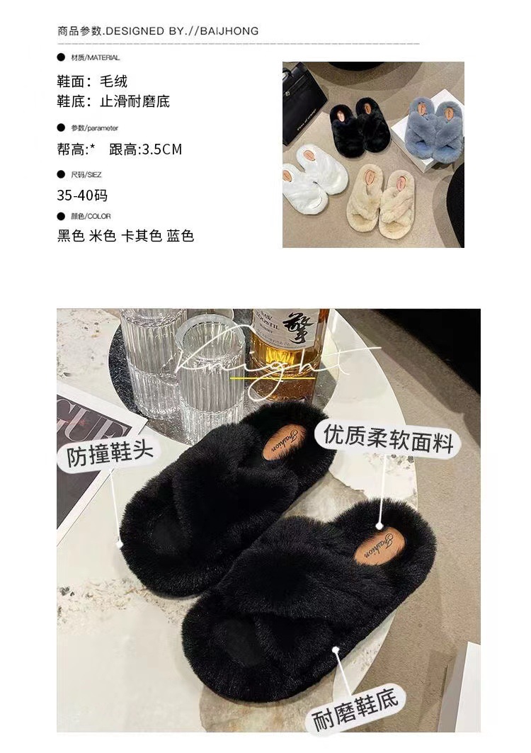 保暖毛毛拖鞋女秋冬新款交叉带拖鞋时尚外穿厚底网红ins棉拖鞋女