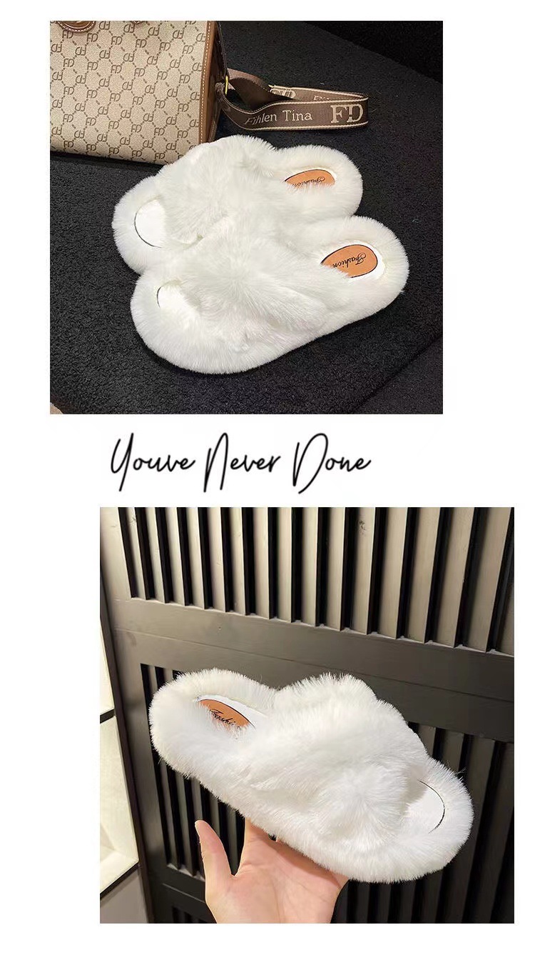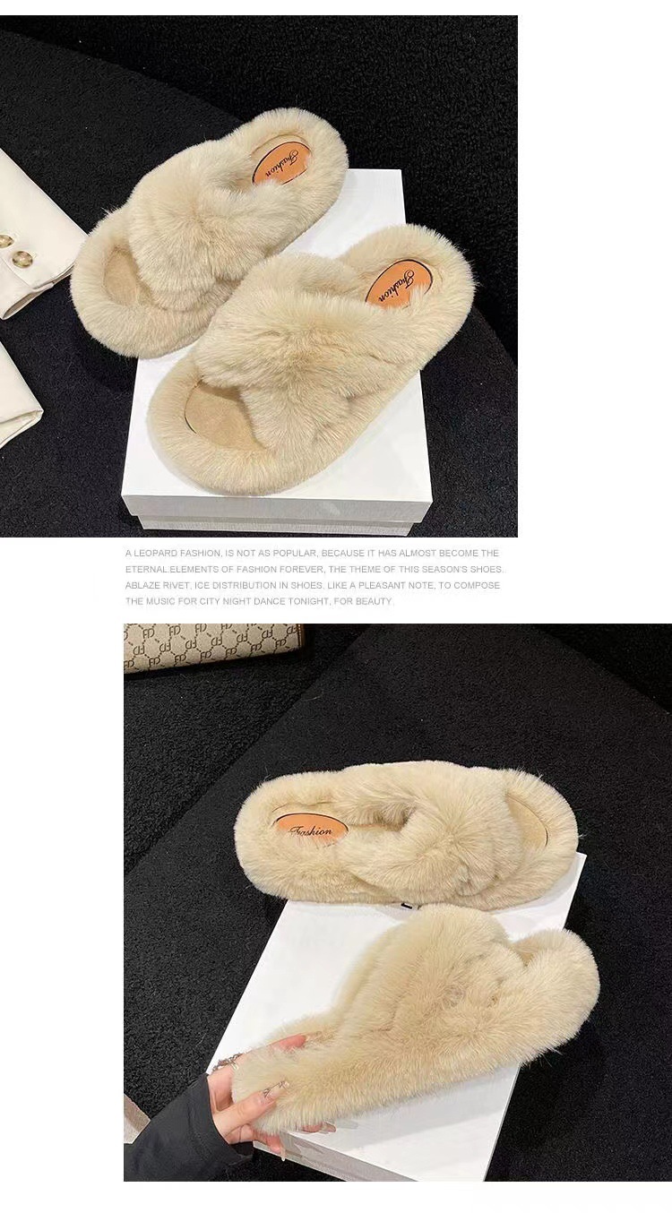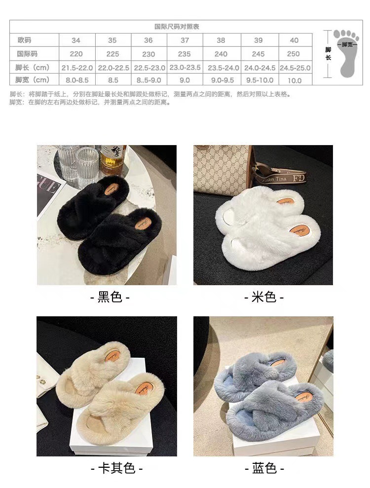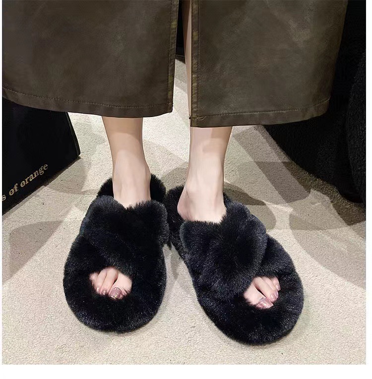 保暖毛毛拖鞋女秋冬新款交叉带拖鞋时尚外穿厚底网红ins棉拖鞋女