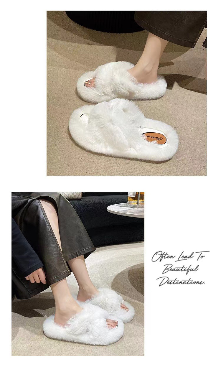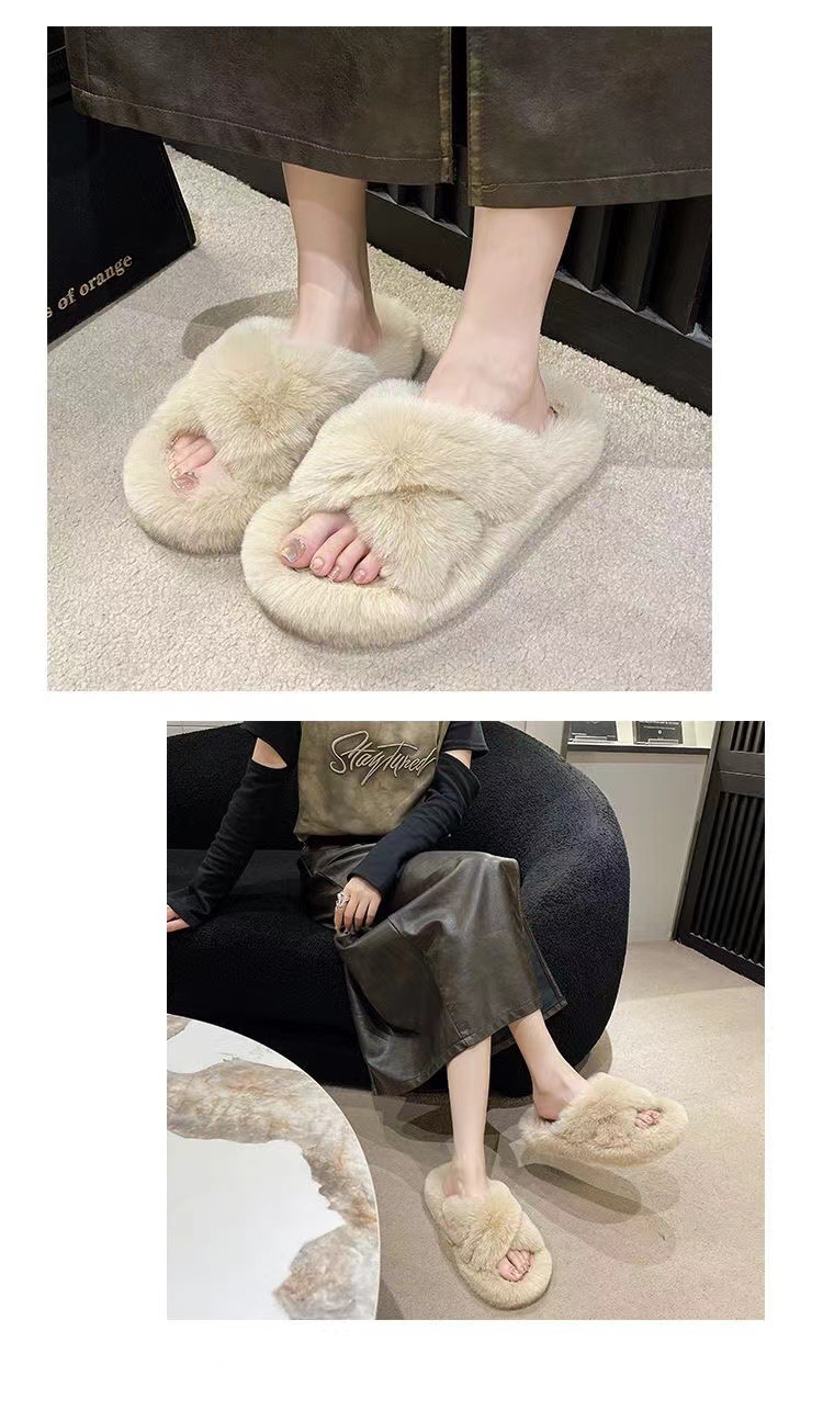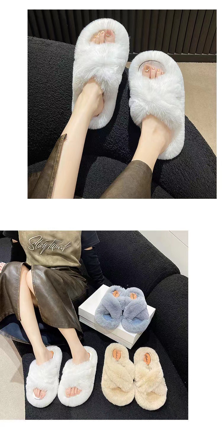 欧洲站厚底增高毛毛拖鞋女外穿2025新款秋冬百搭交叉棉拖鞋批发