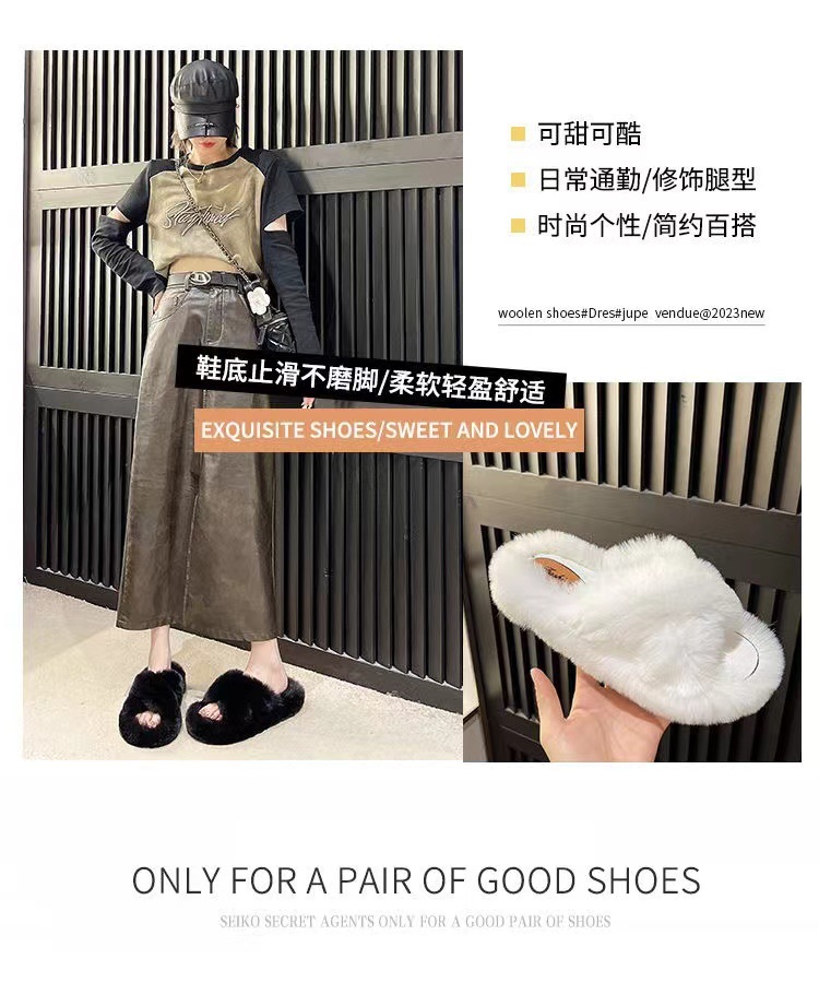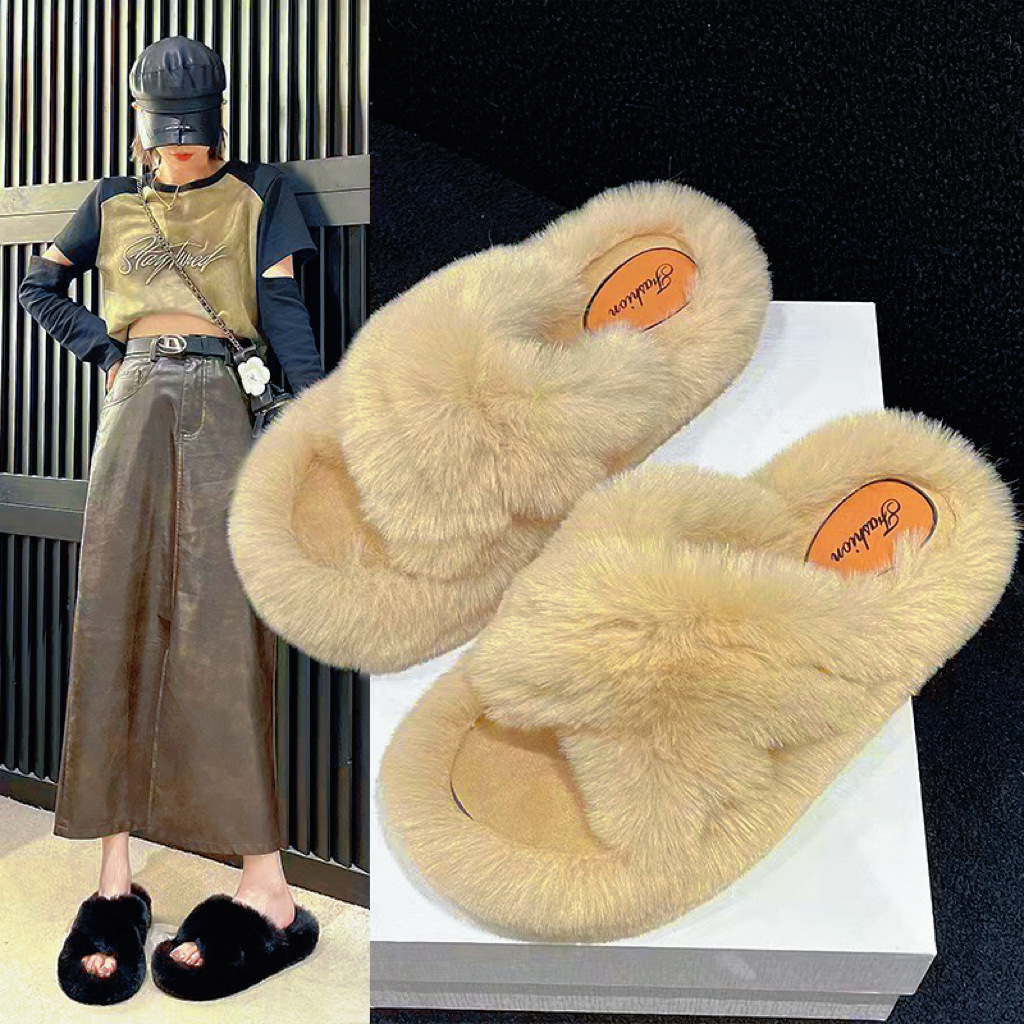 ネットセレブ人気の女性用毛皮靴、2025年秋冬新作おしゃれなお出かけ厚底ぬいぐるみ綿スリッパ
