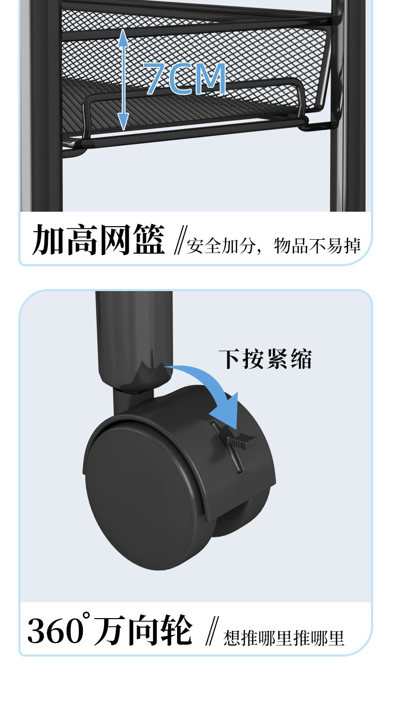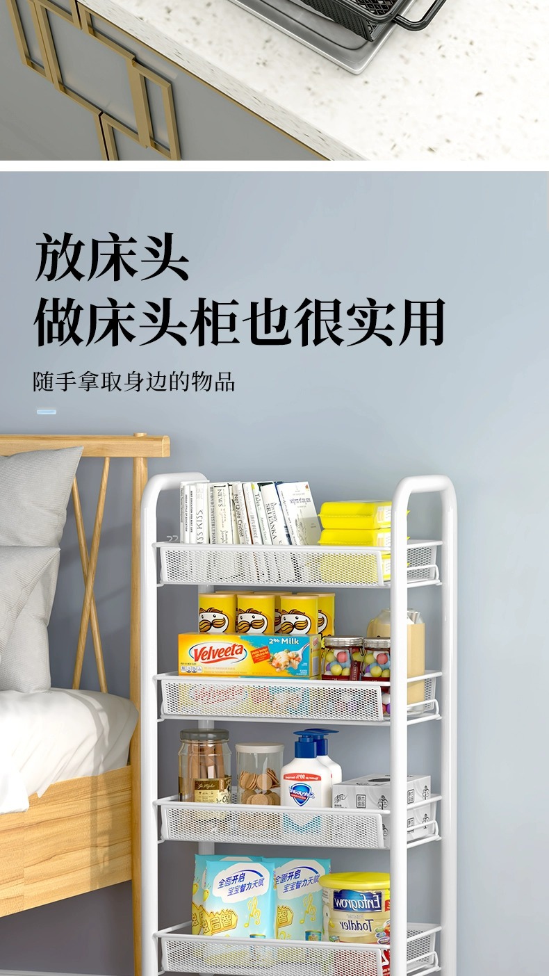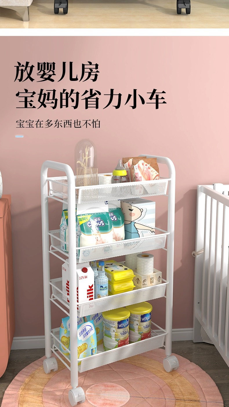 小推车置物架家用零食落地多层客厅卧室收纳书包架移动书架储物