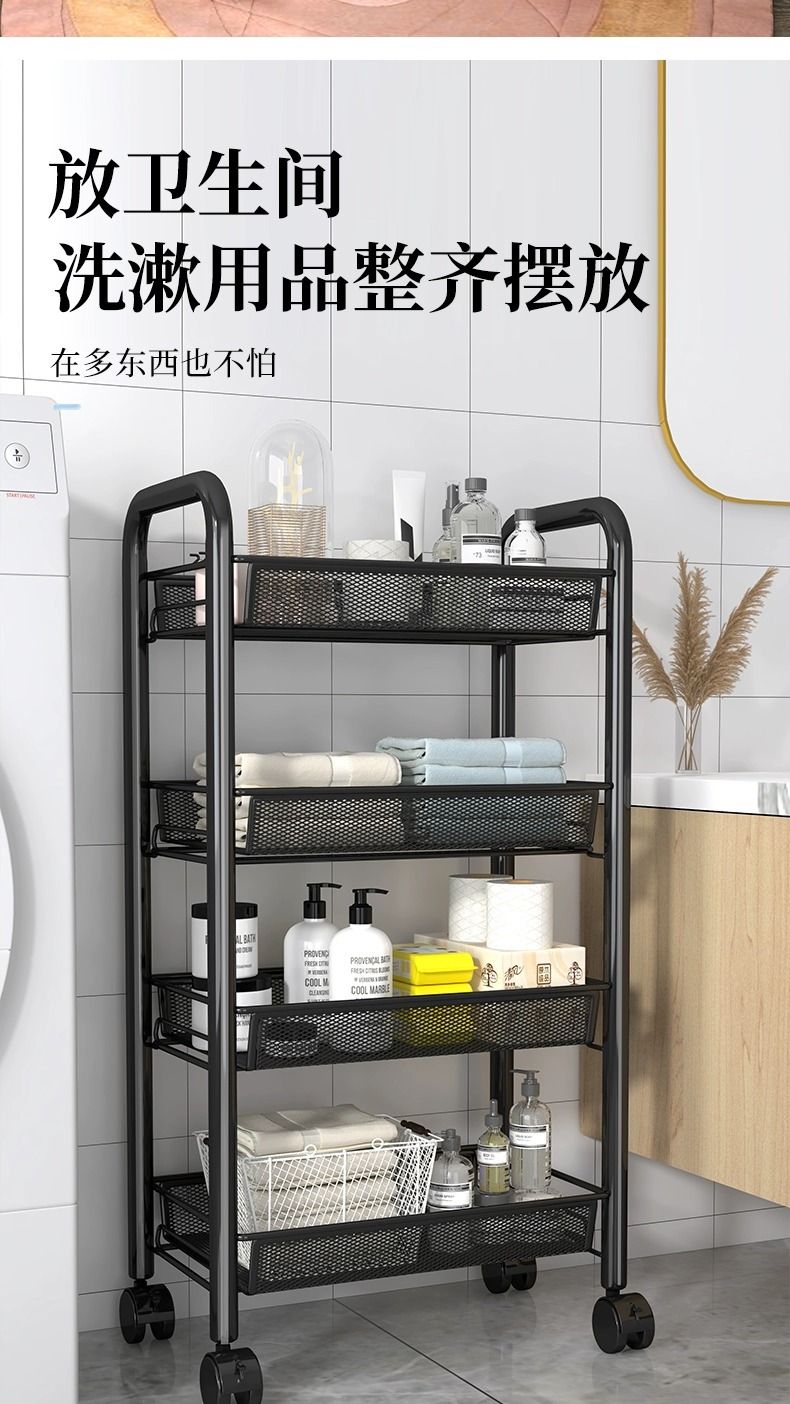 手押し車の棚が床に落ちている多層収納棚浴室の輪付きカート多機能玩具スナック収納
