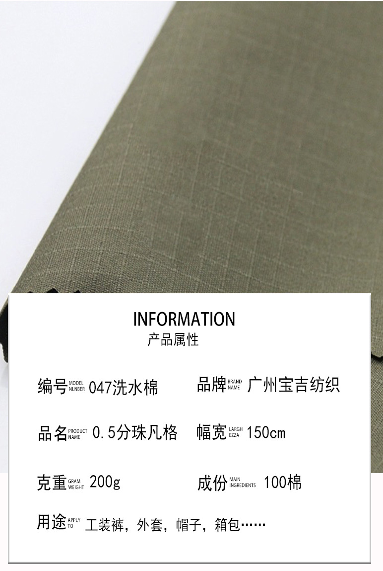 帆布袋ins高级感面料水洗棉 全棉珠帆格纹布男装外套工装夹克帆布
