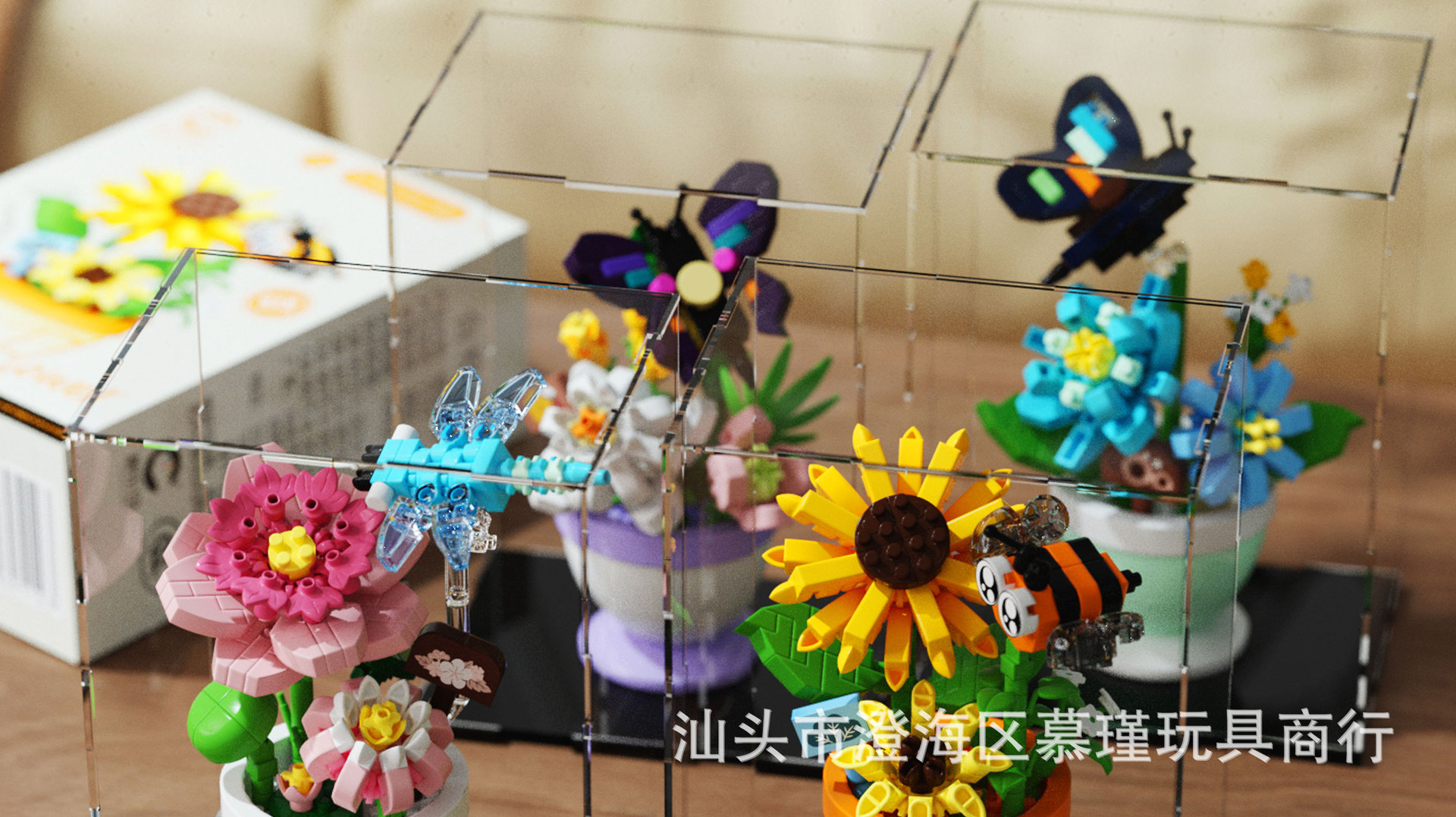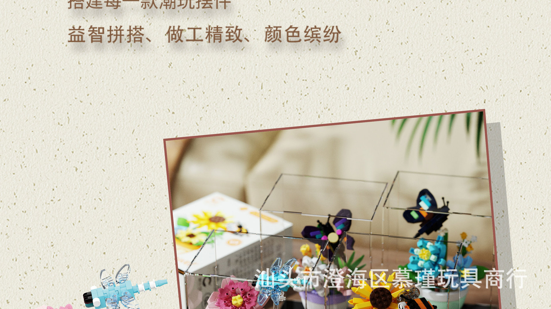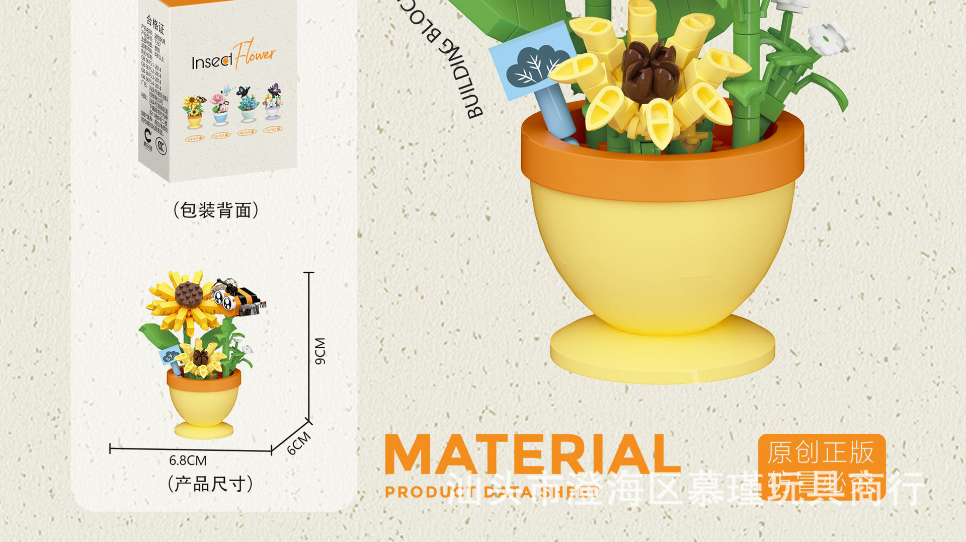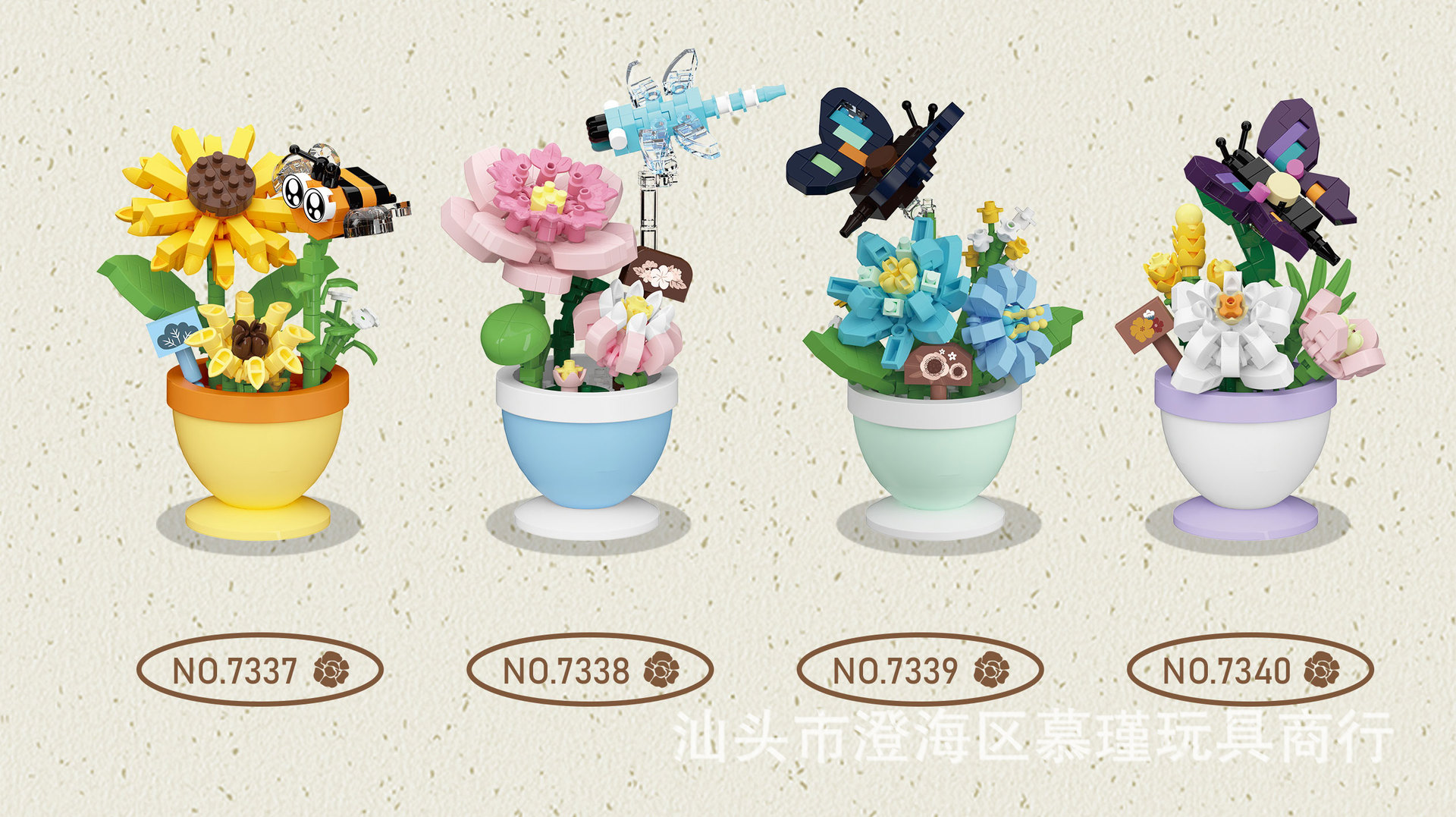 潮楽創積み木花間精灵7337-7340永生花ヒマワリ鉢植え盛り合わせ玩具卸売り代発
