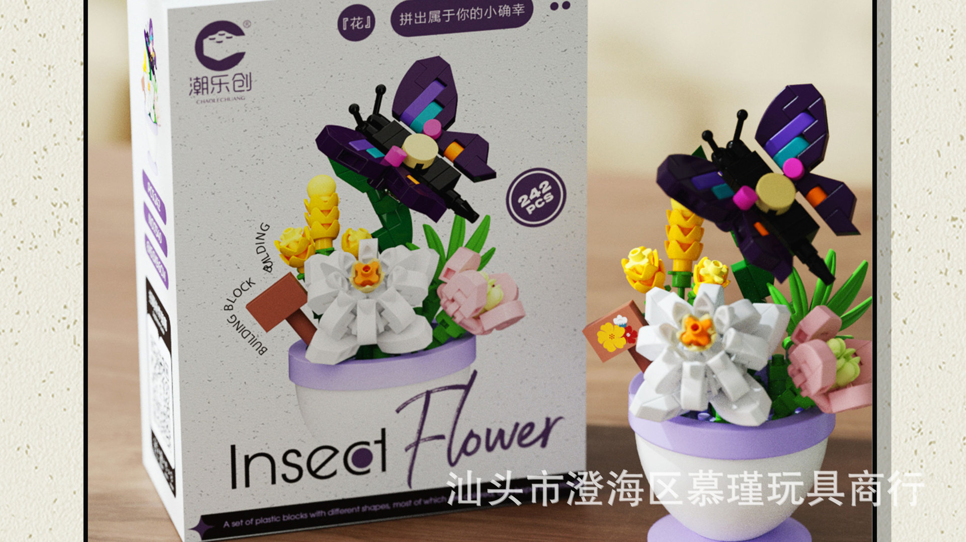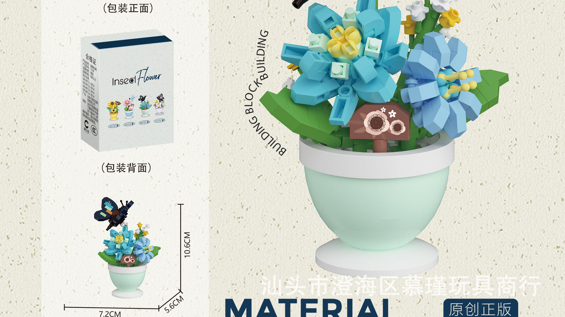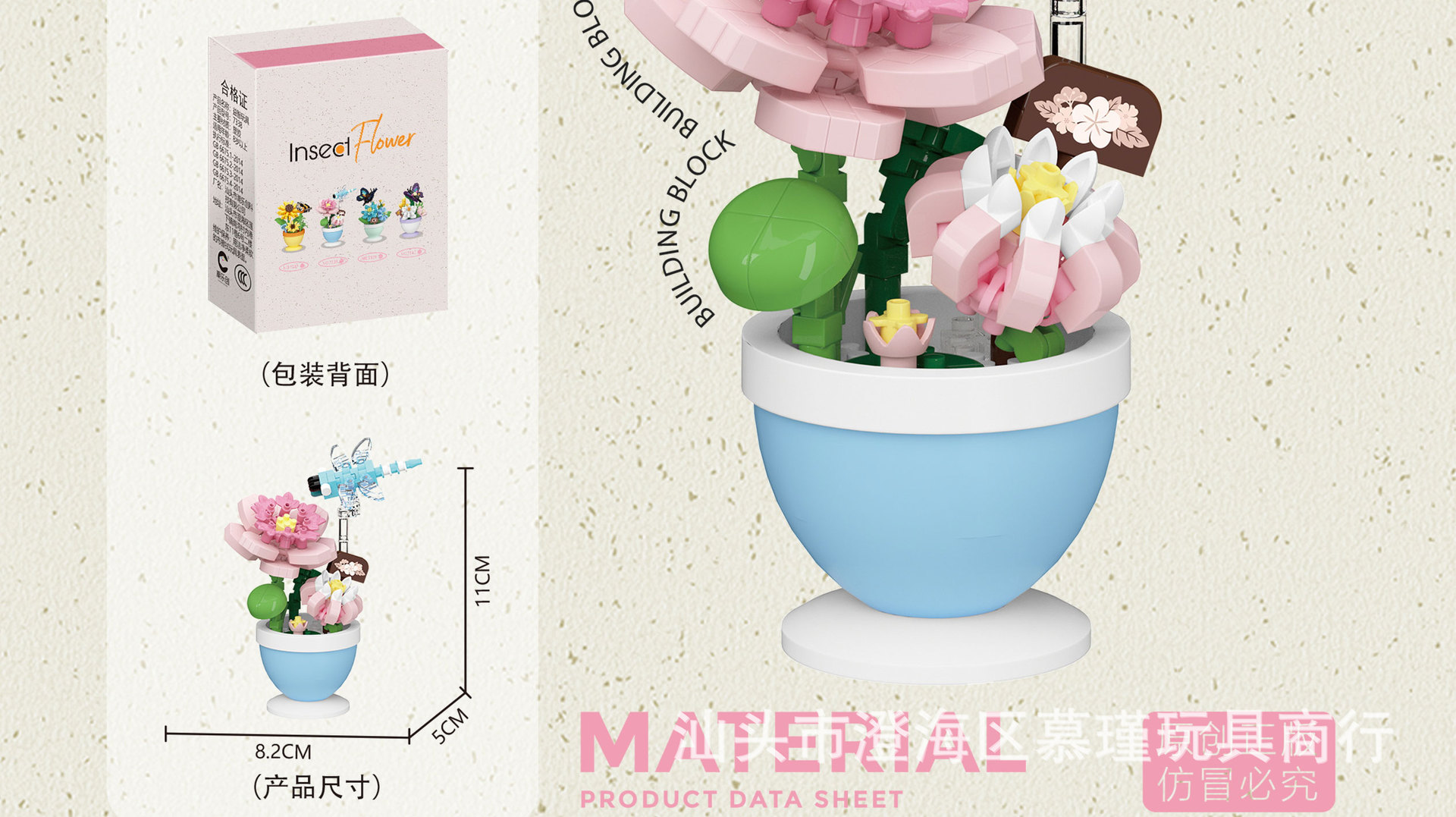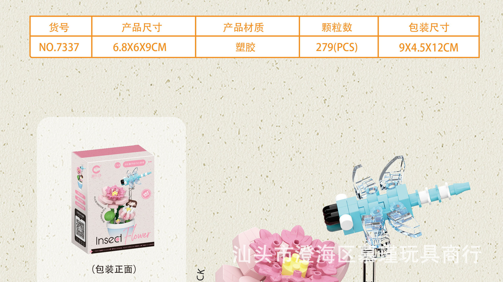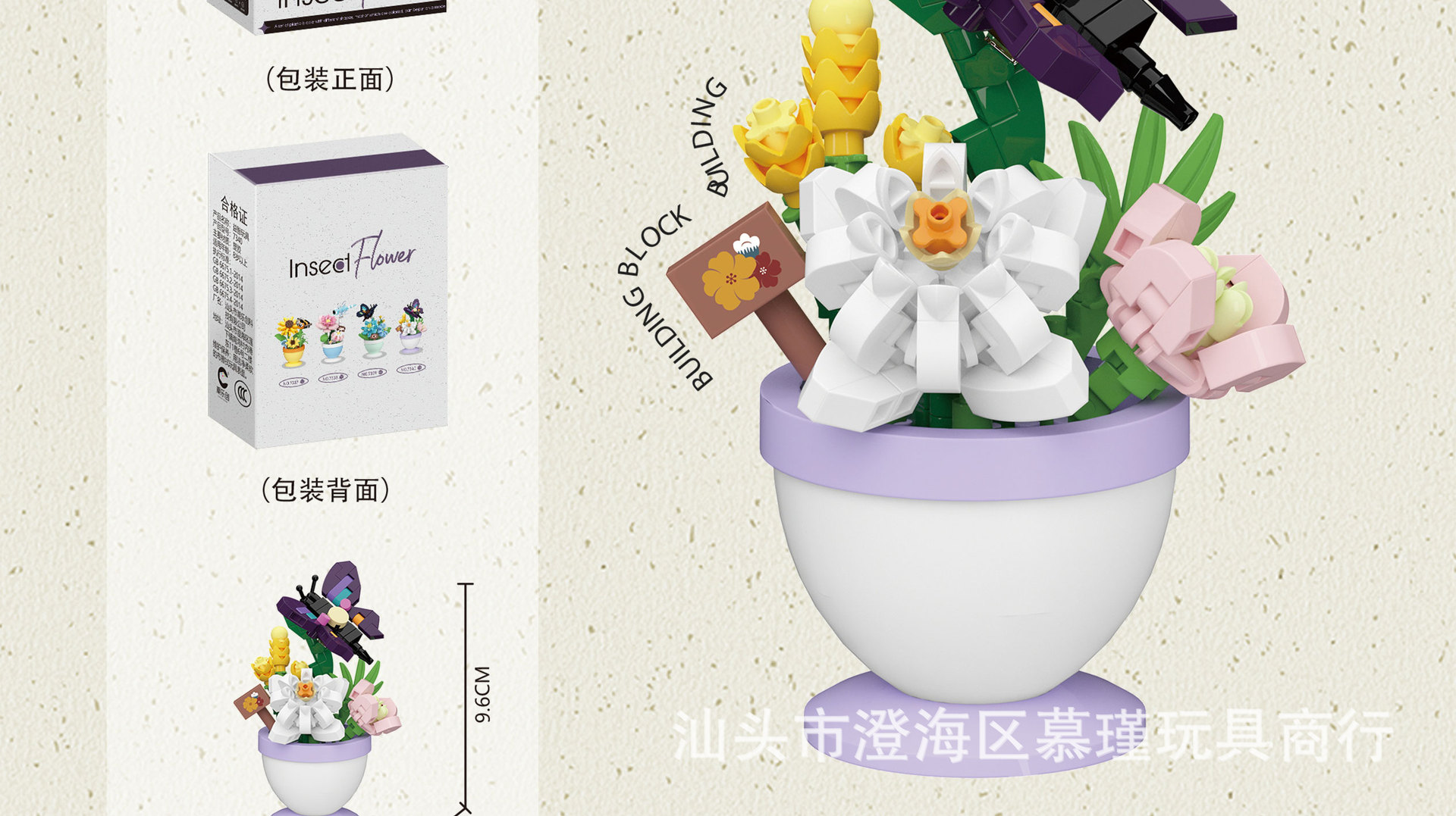 潮楽創積み木花間精灵7337-7340永生花ヒマワリ鉢植え盛り合わせ玩具卸売り代発