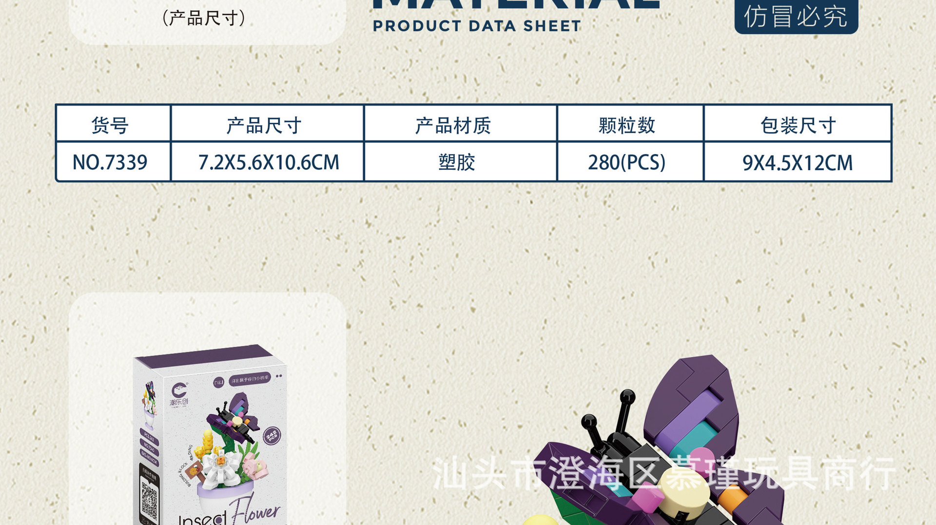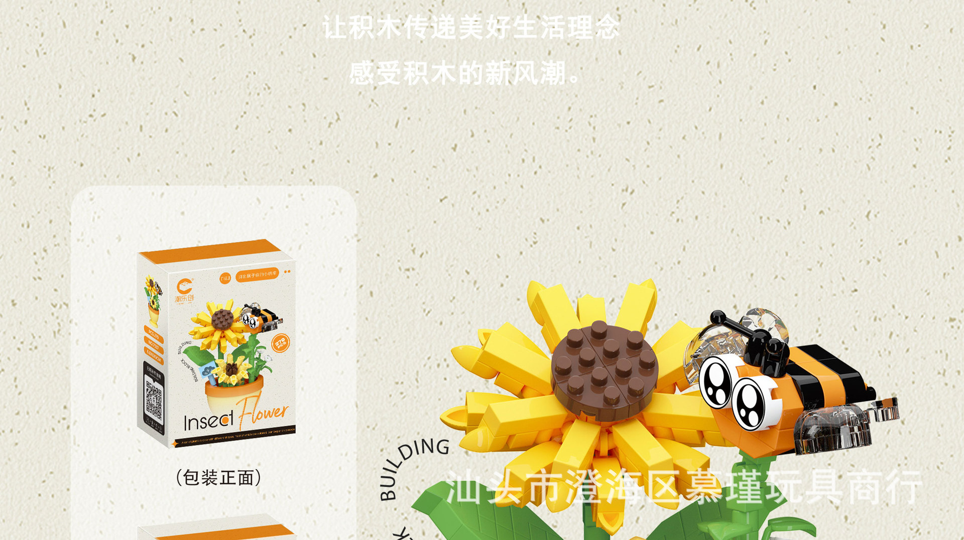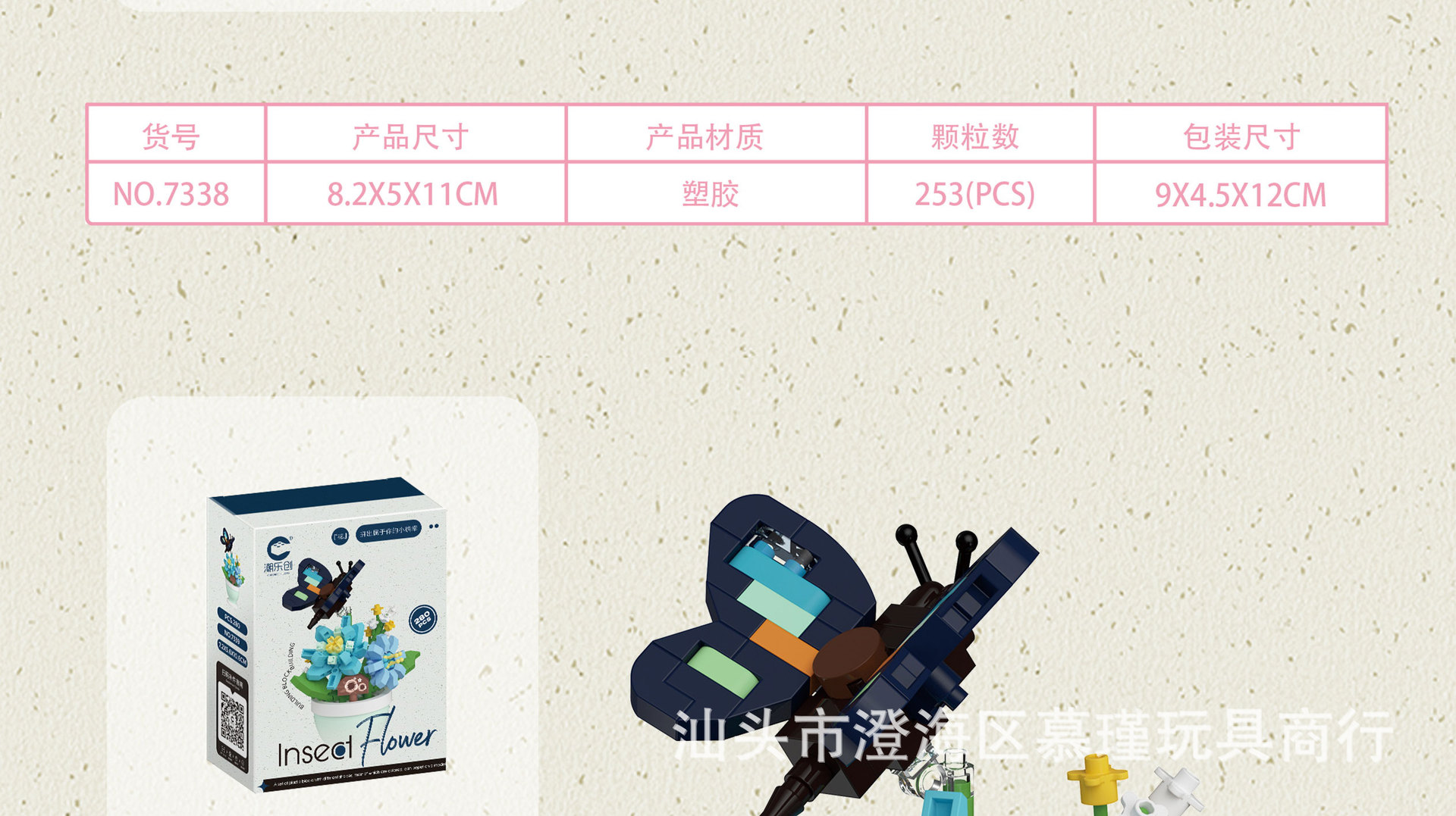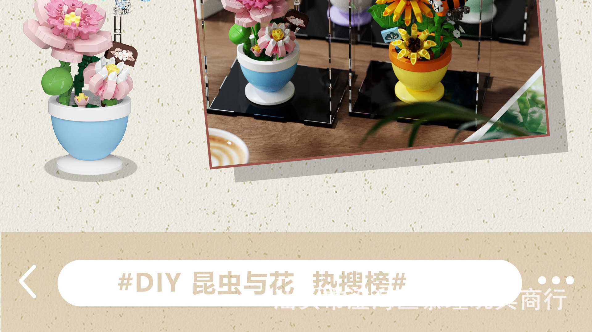 潮楽創積み木花間精灵7337-7340永生花ヒマワリ鉢植え盛り合わせ玩具卸売り代発