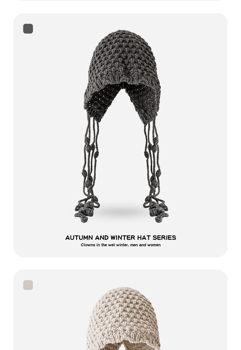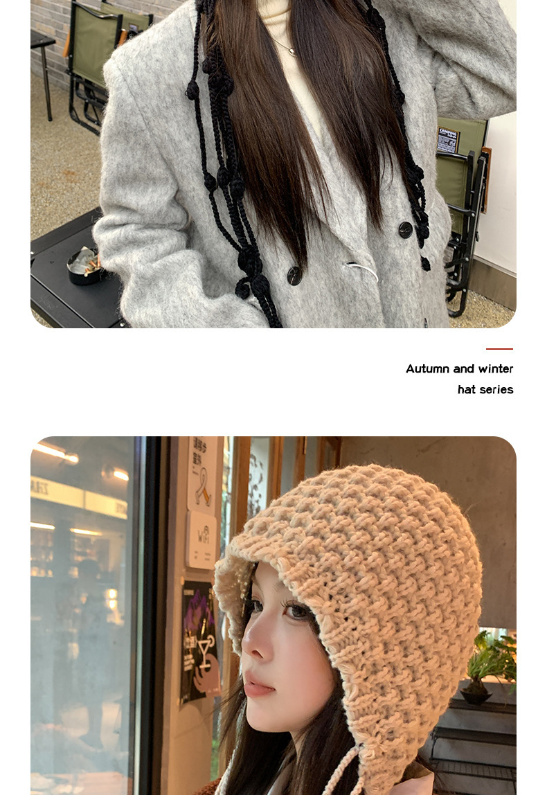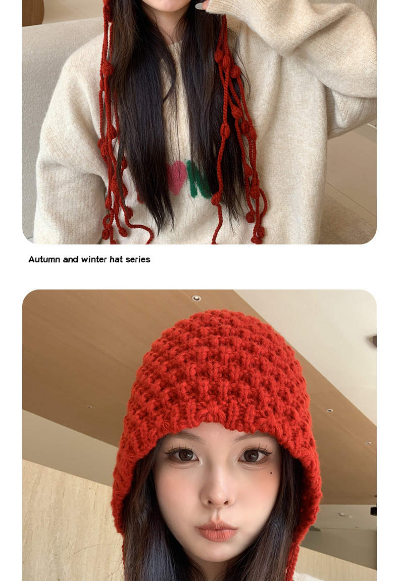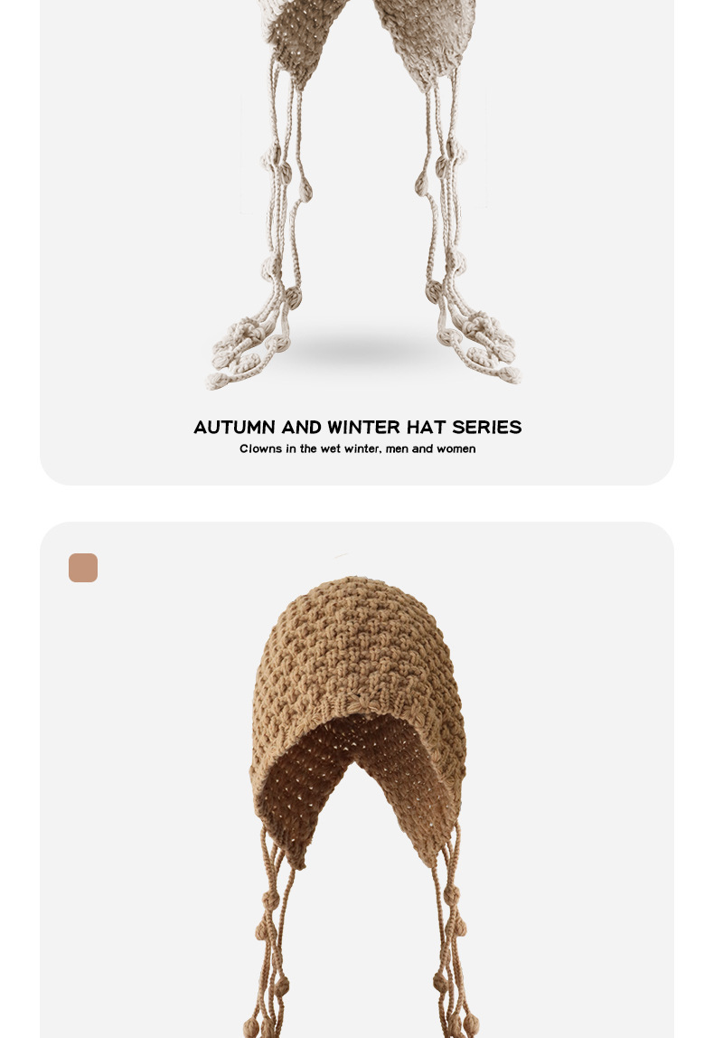 日系时尚百搭护耳毛线帽女彩色球球流苏手工针织帽秋冬保暖包头帽