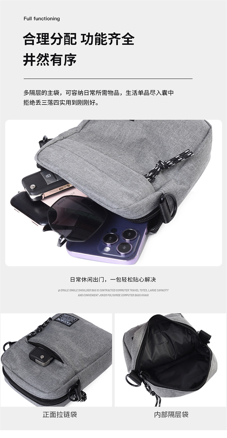 メンズアウトドアシンプルポータブルショルダーバッグ2025新しい仕事通勤携帯電話バッグ軽量カジュアルクロスボディメンズバッグ