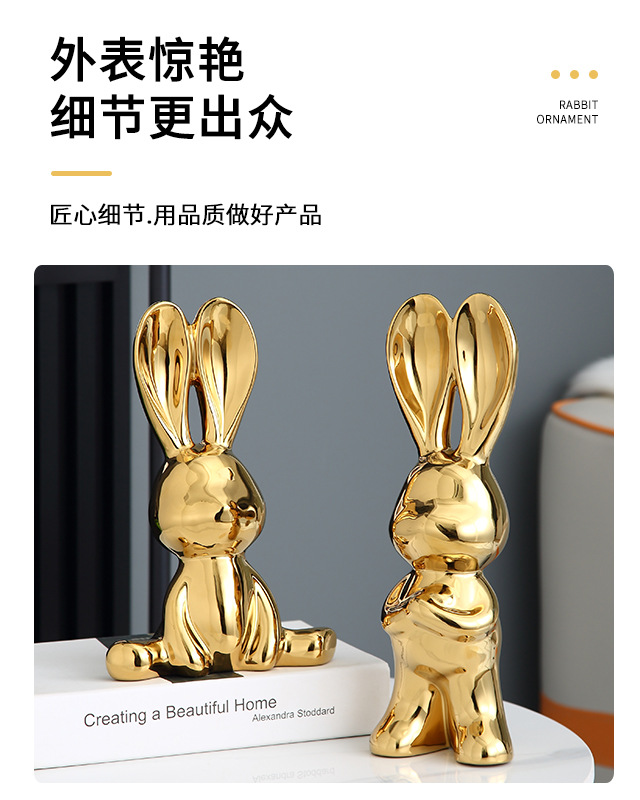 金銀のウサギの陶磁器の置物の客間のテレビの棚の酒の箱の家庭の装飾品の高級な軽い豪華な芸術の貯金箱