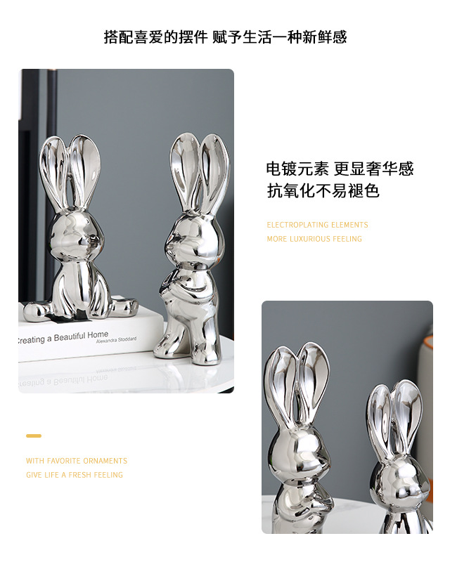 32cm [シルバー] スタンディングラビット + 26cm [シルバー] シッティングラビット,32cm [ゴールド] スタンディングラビット + 26cm [ゴールド] 座りウサギ
