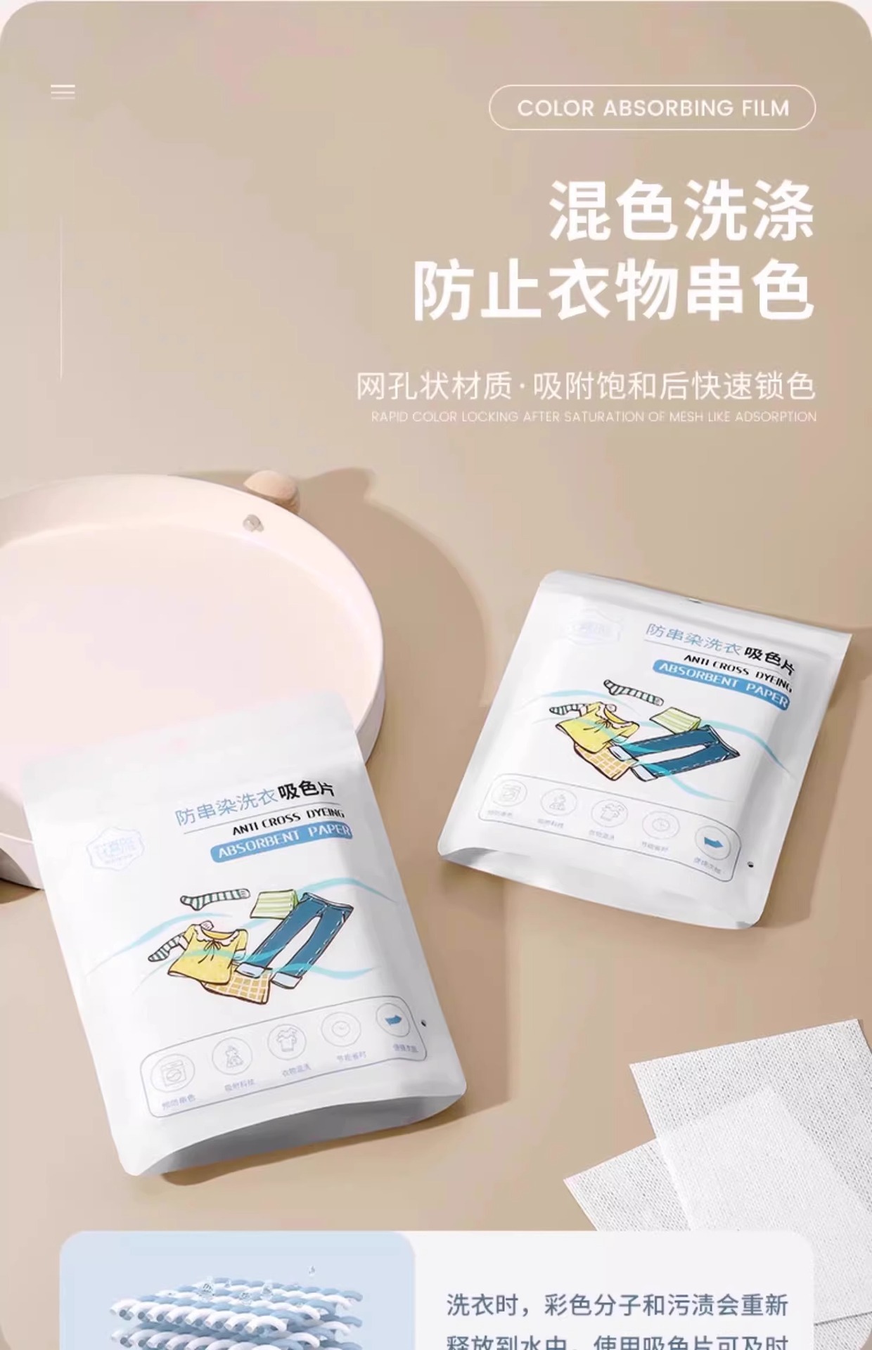 吸色洗衣片可机洗防串色纸洗衣片吸色衣服防染色家用色母片洗衣机