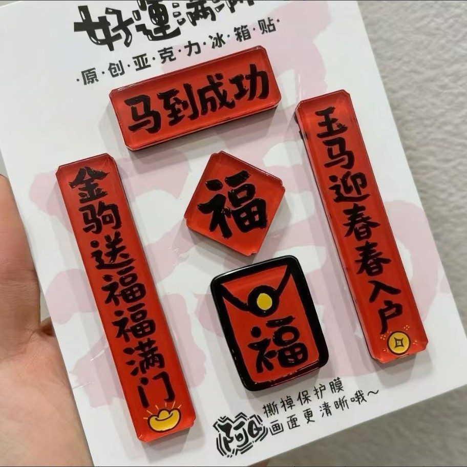 对联2026年马年新款亚克力磁吸冰箱贴ins家用装饰创意搞笑冰箱贴