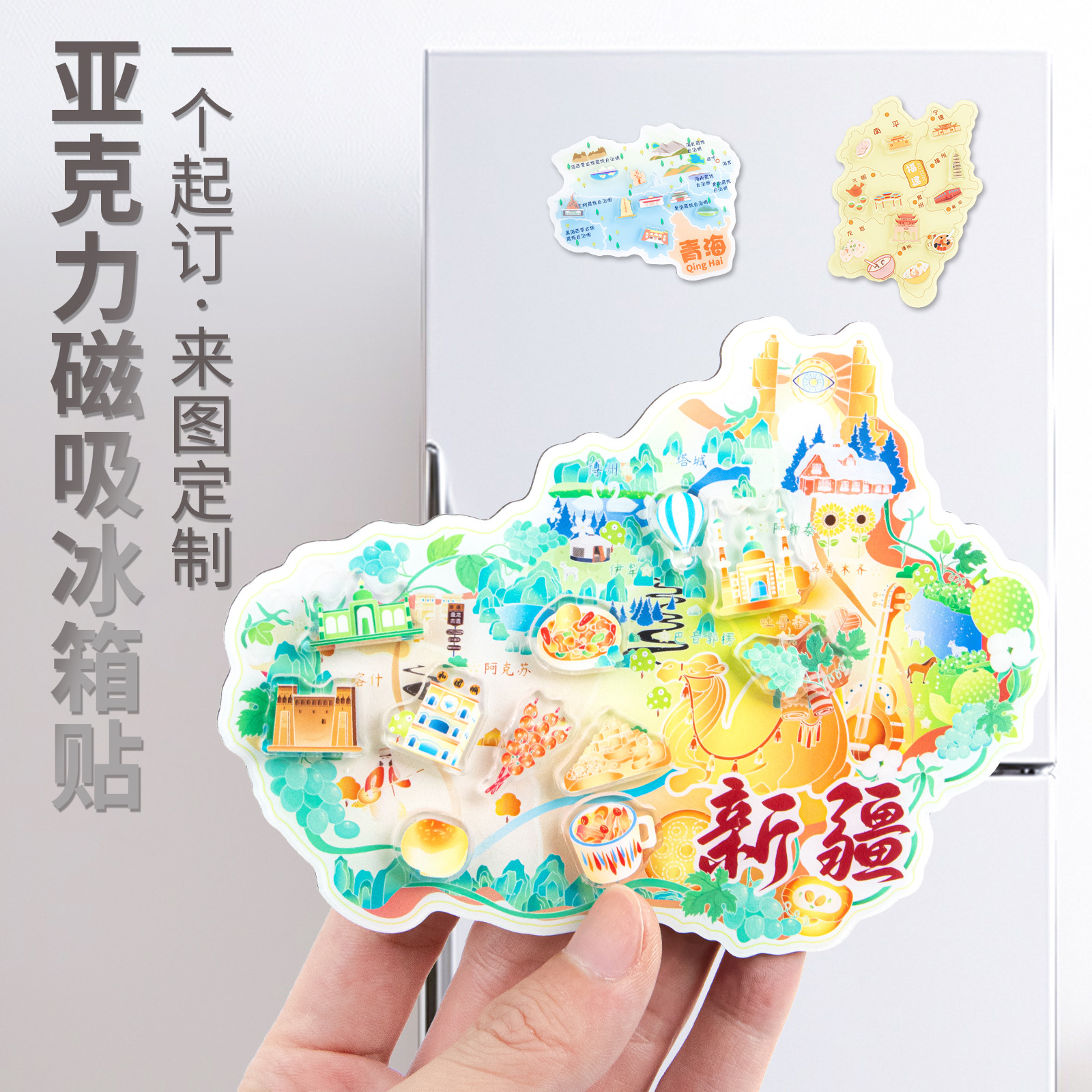 アクリル冷蔵庫マグネット、カスタマイズされた漫画の観光スポット周辺磁気ステッカー、企業の観光スポット、都市の文化的で創造的な特殊な形状の軟磁性ステッカー